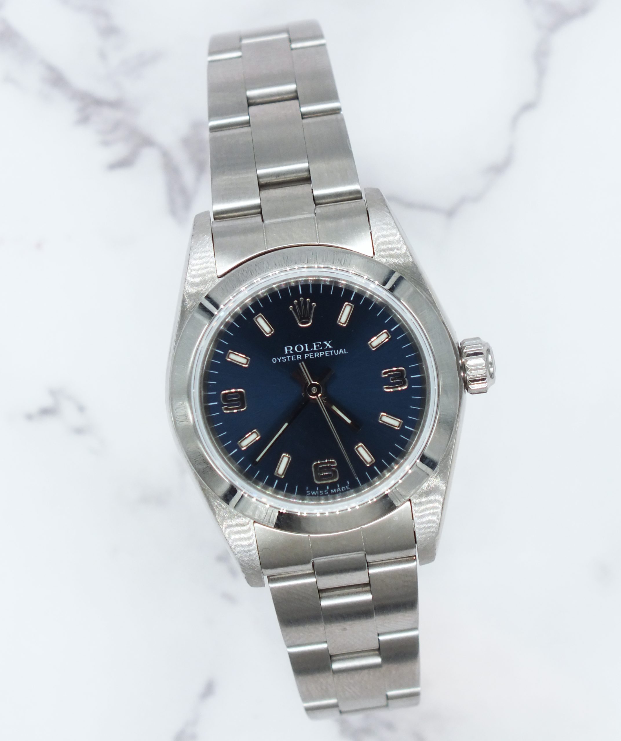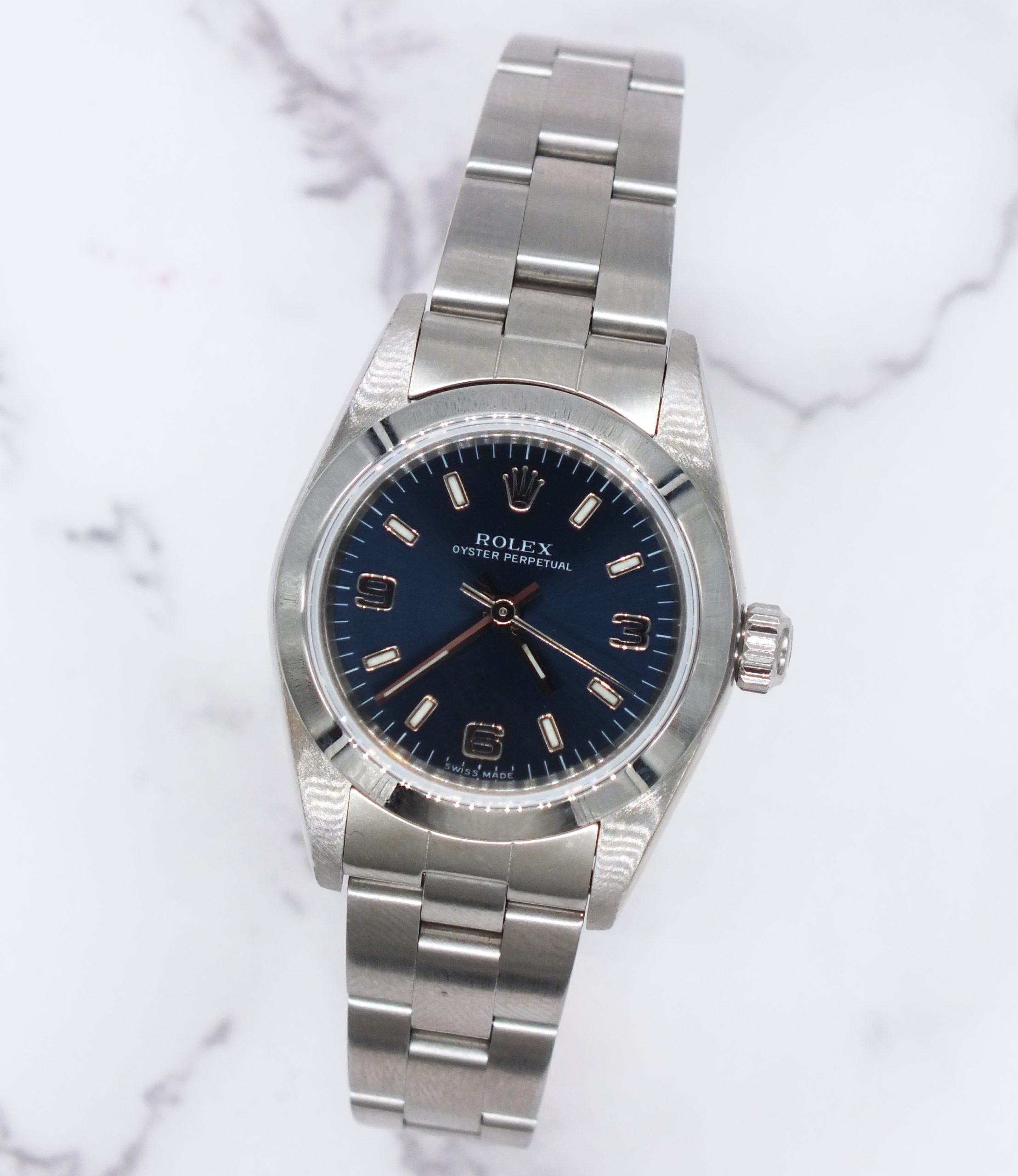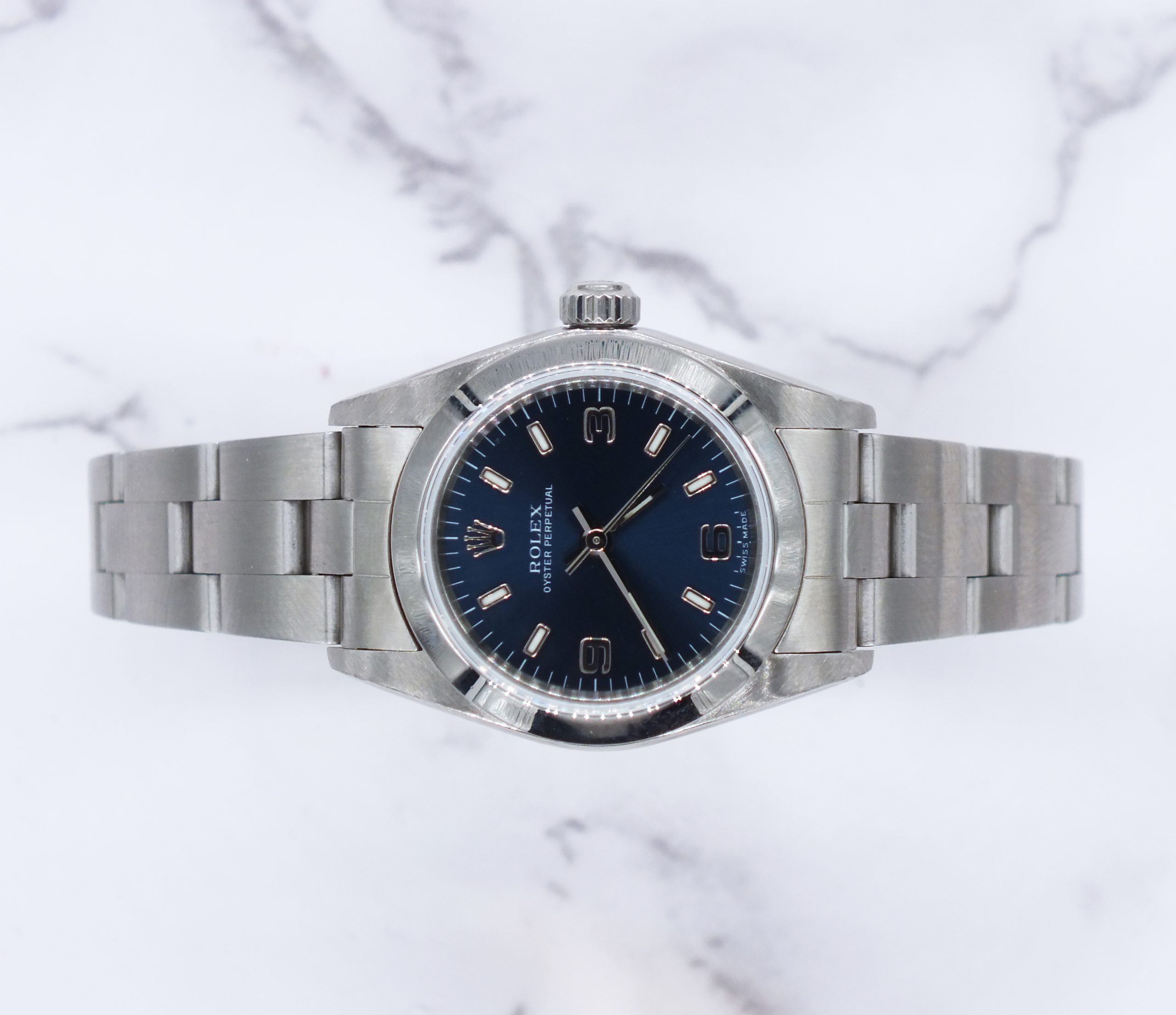 Ladies Stainless Steel Rolex Oyster Perpetual With Blue Dial – Box & Papers