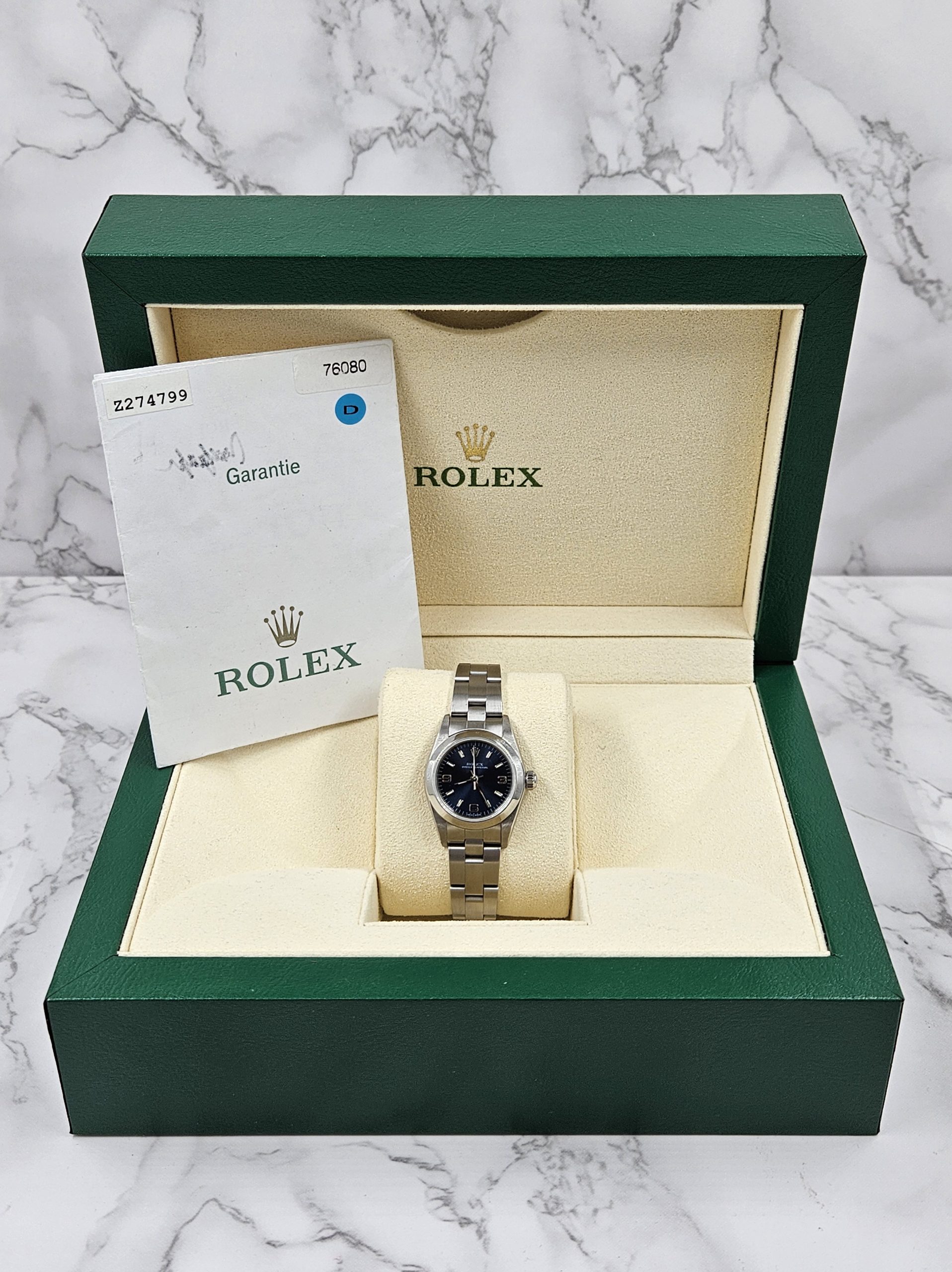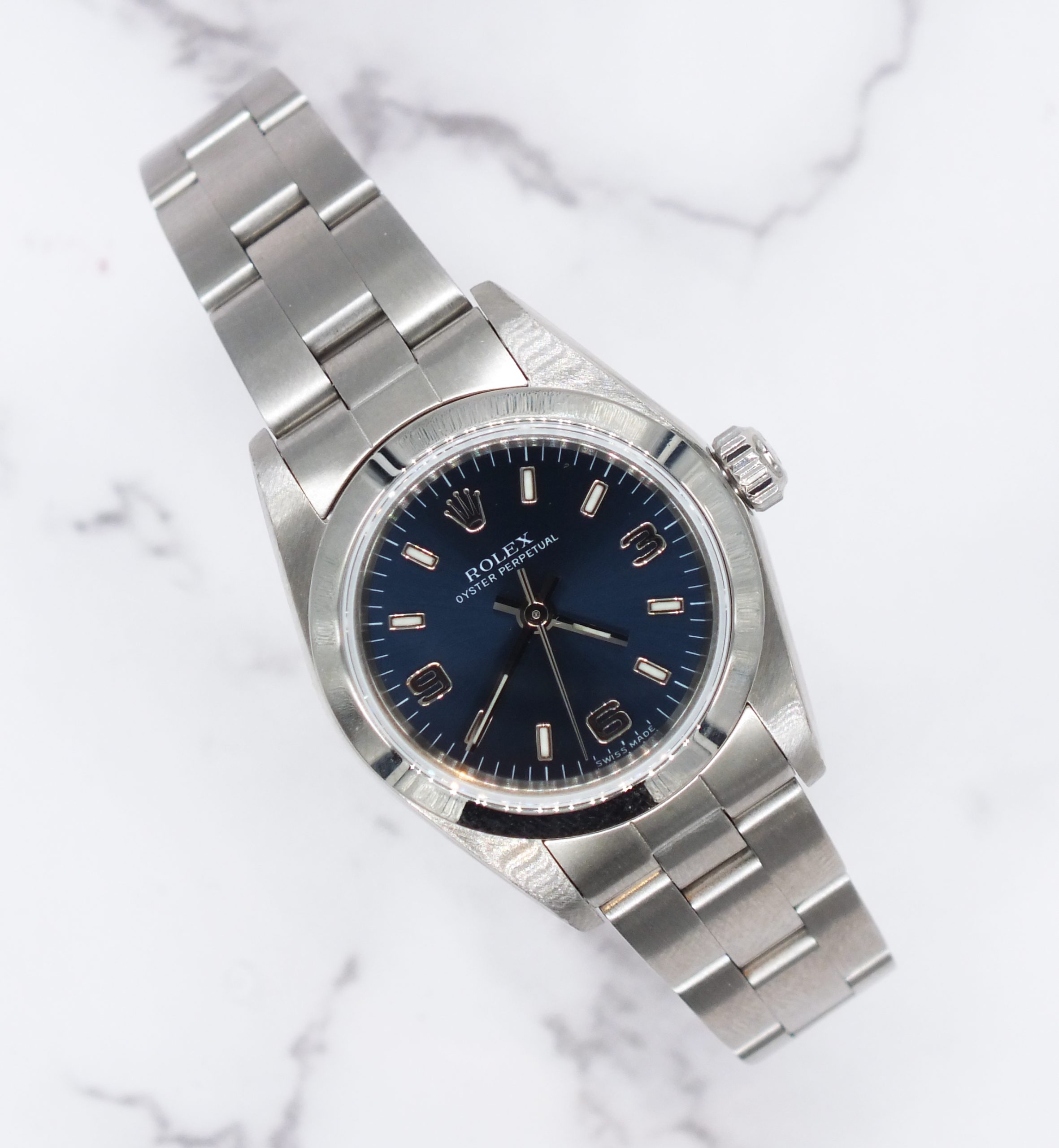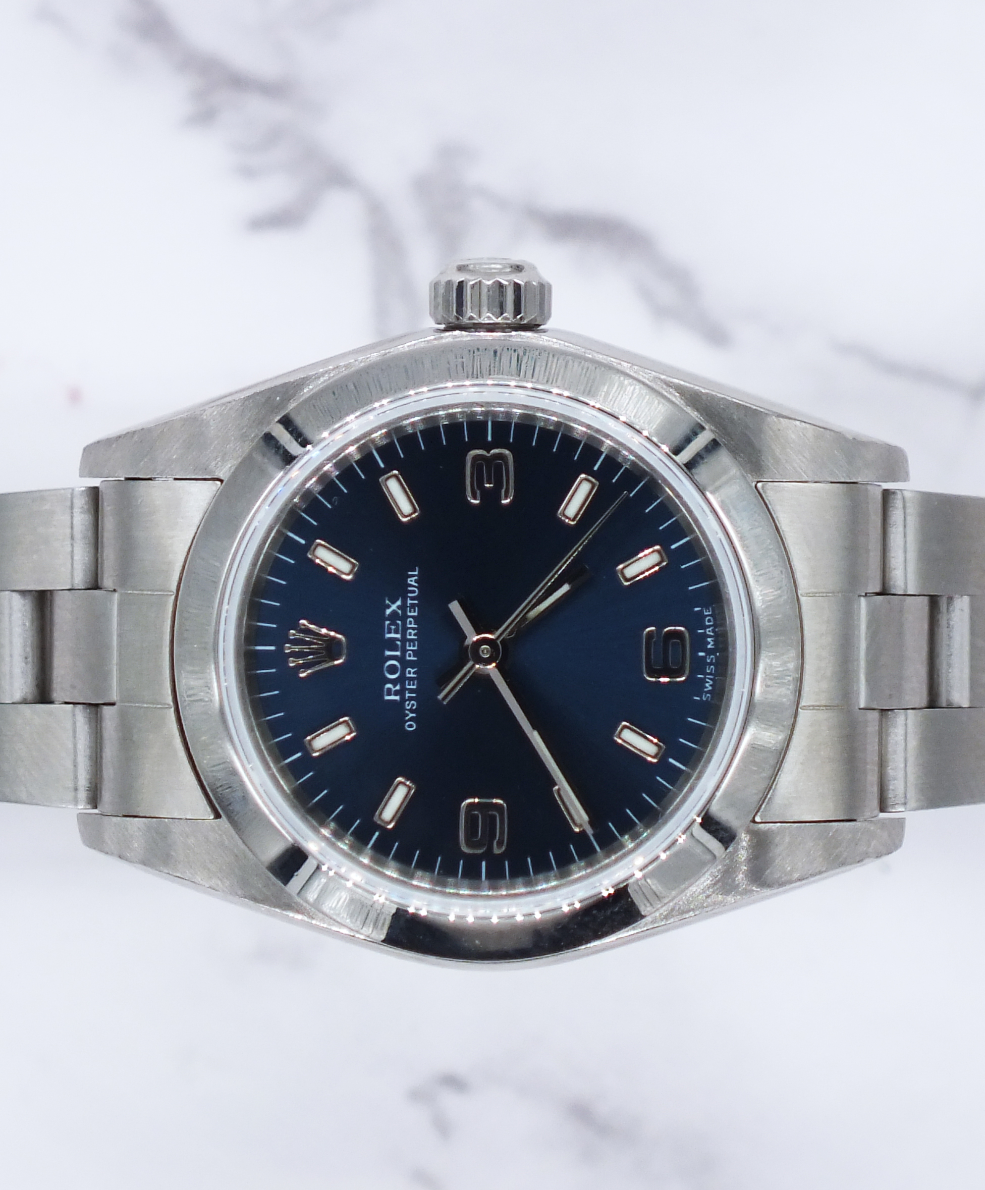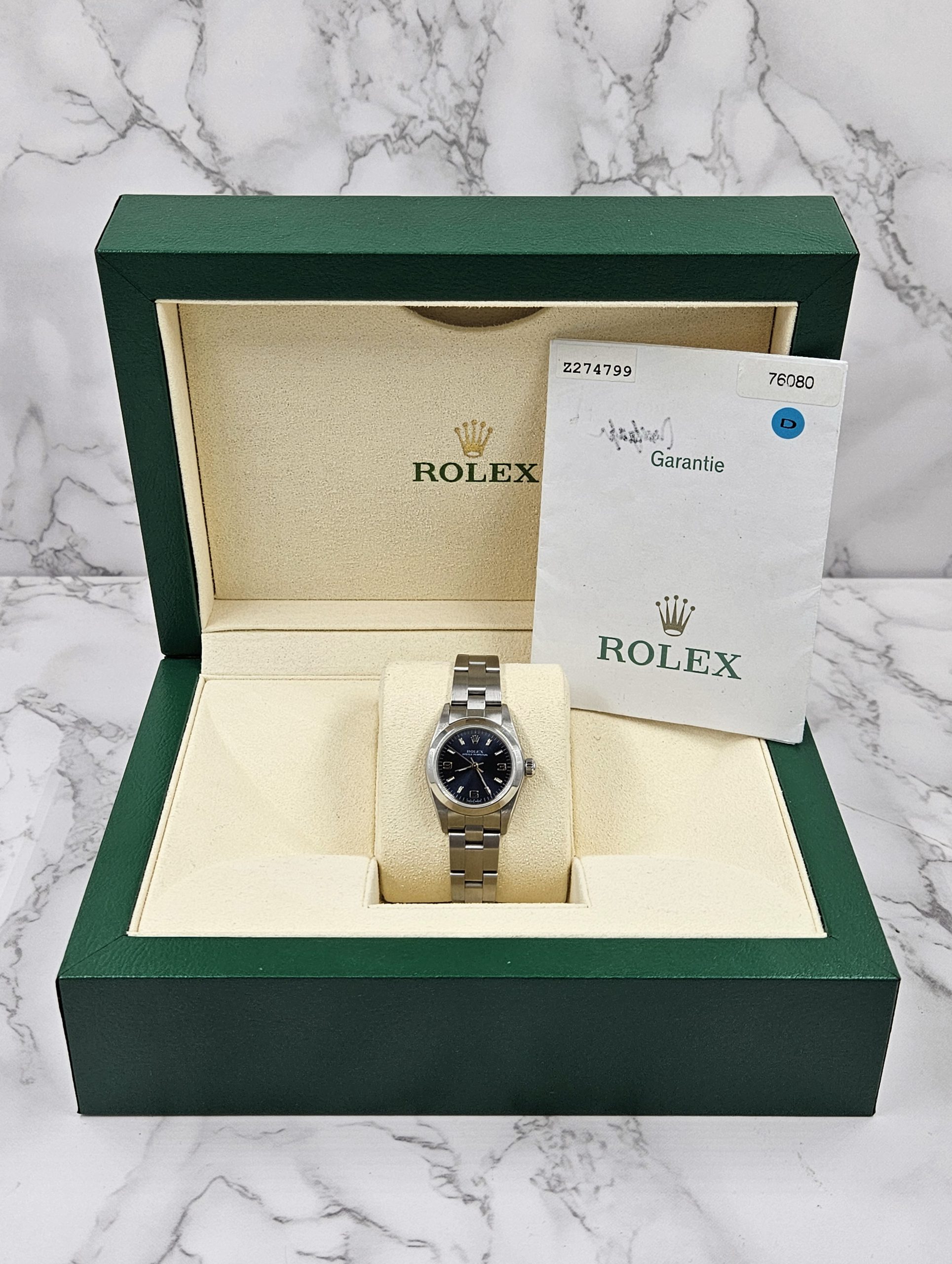 Ladies Stainless Steel Rolex Oyster Perpetual With Blue Dial – Box & Papers