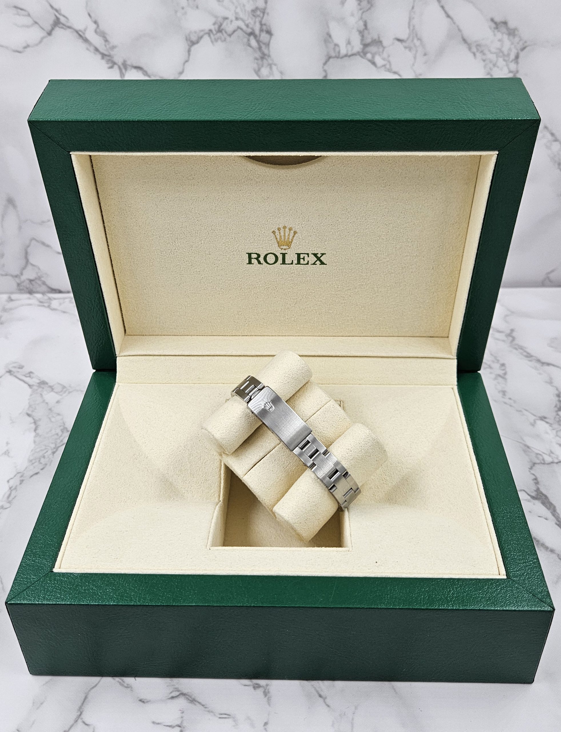 Box and papers: Original Rolex box and papers along with a detailed paperwork check list including our very own letter headed invoice / receipt, a certificate of authenticity, lost and stolen register check, insurance valuation and 12-month warranty card.