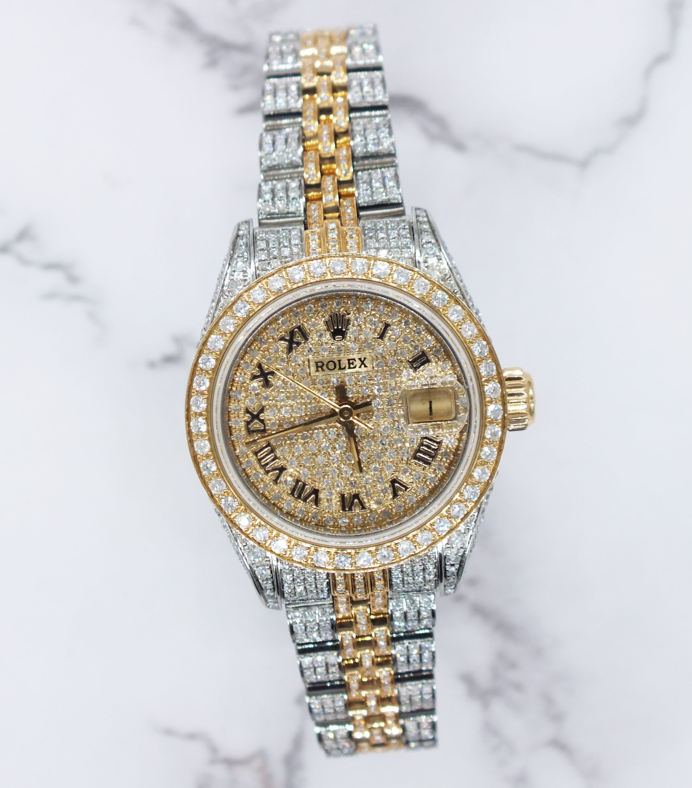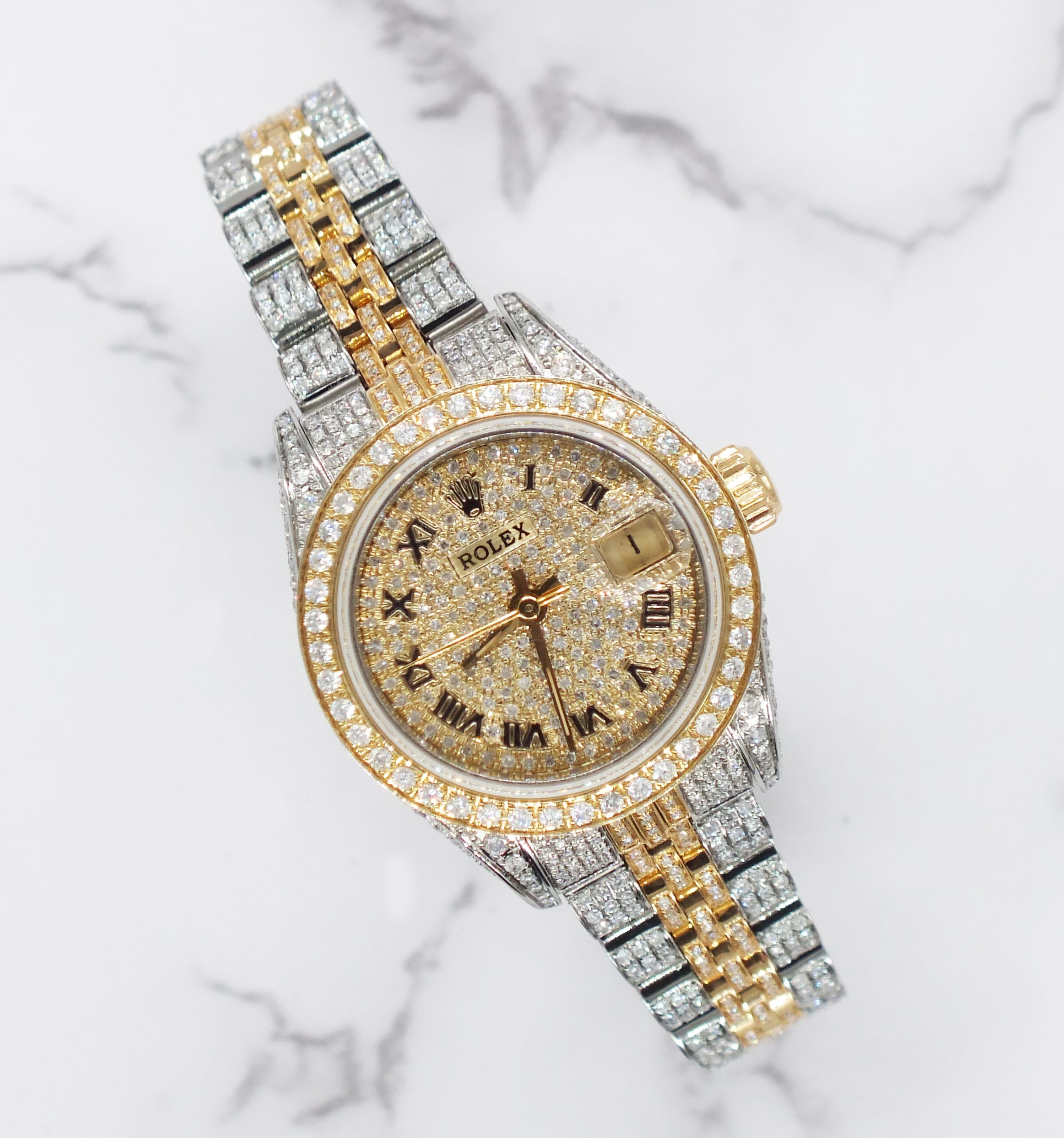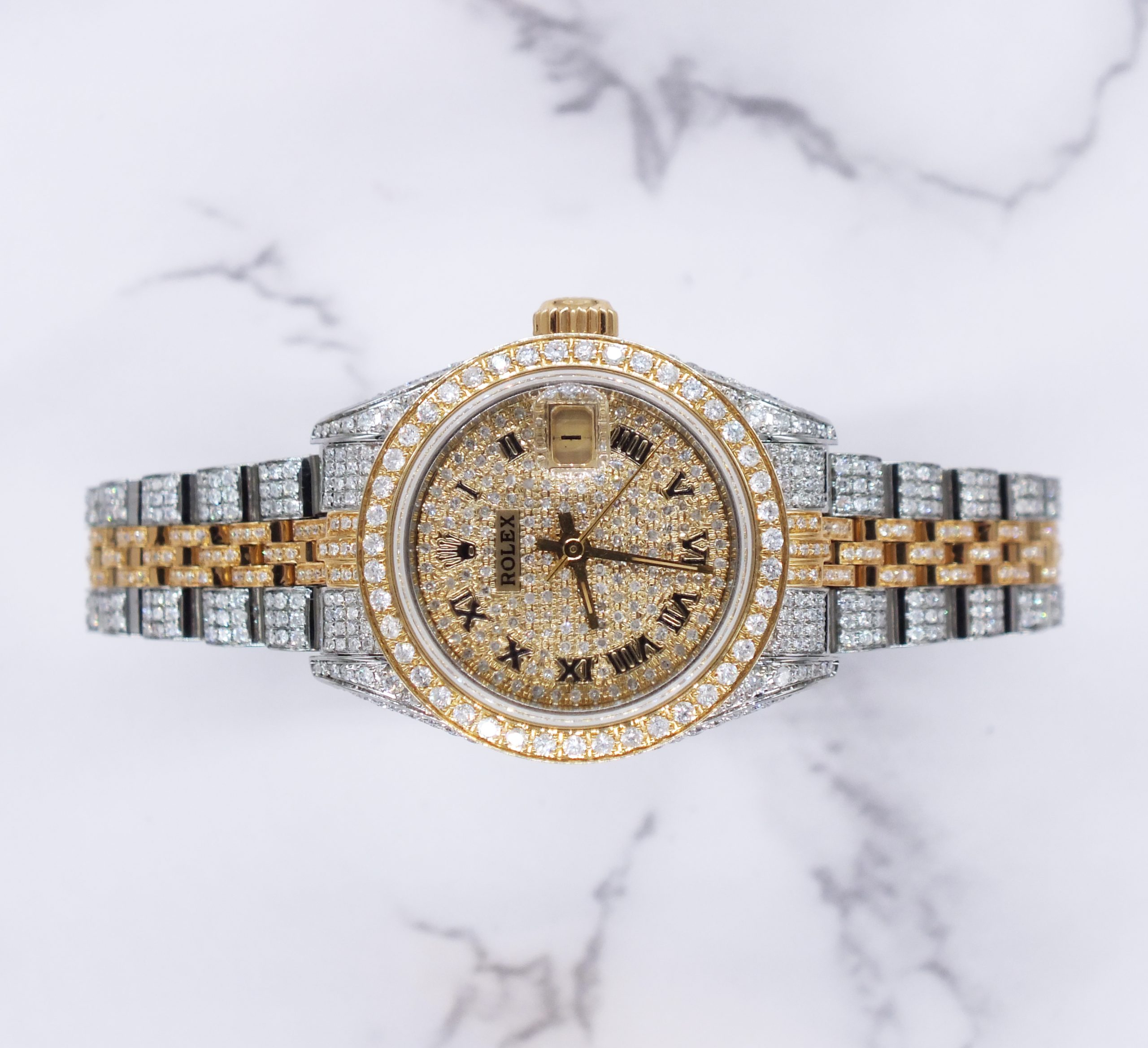 Ladies Rolex Datejust in Steel & Gold with Diamond Dial, Bezel, Shoulders and Bracelet