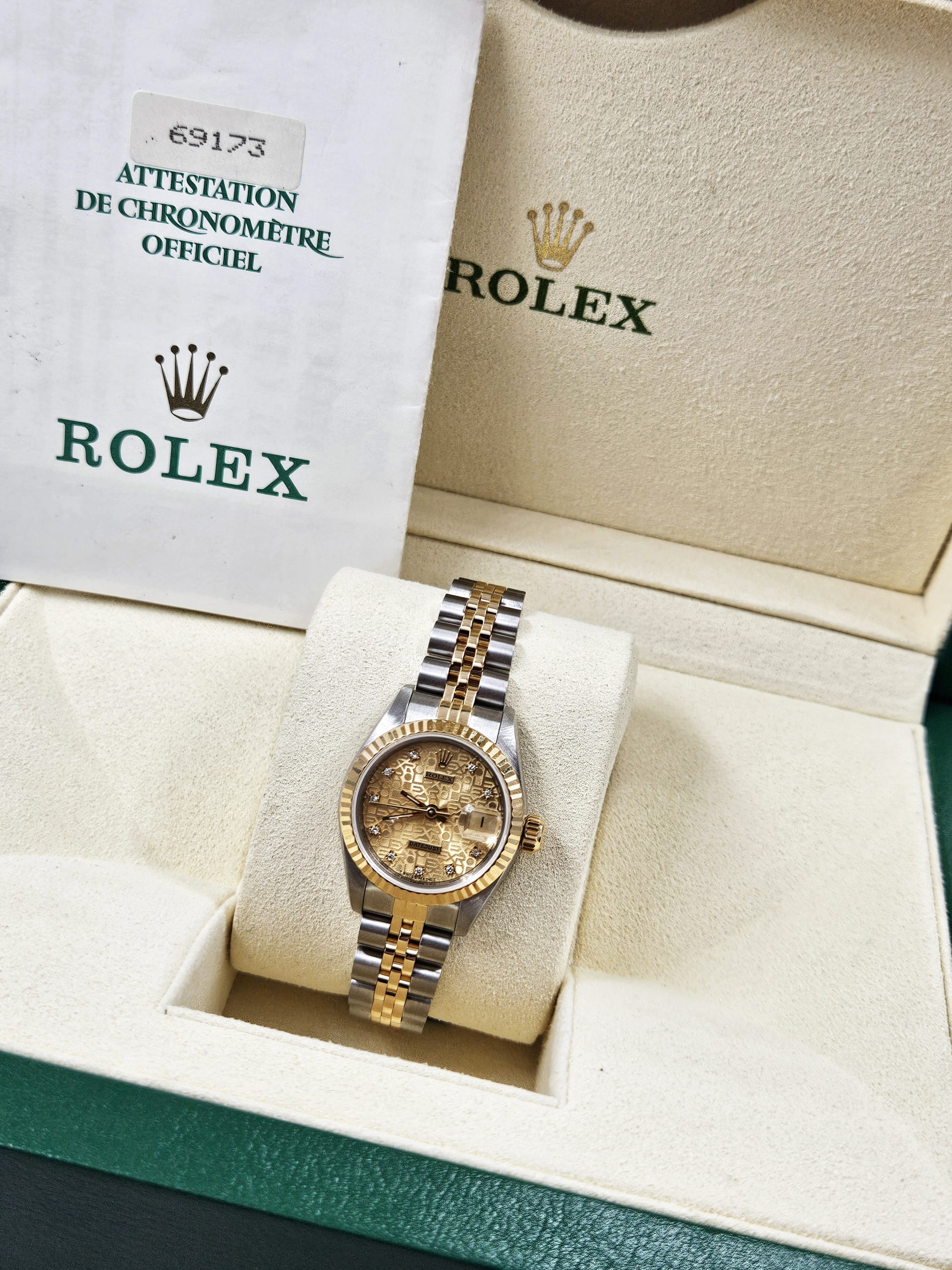 Stunning Ladies Steel & Gold Rolex Datejust with Factory Champagne Jubilee Diamond Dial – Box and Papers