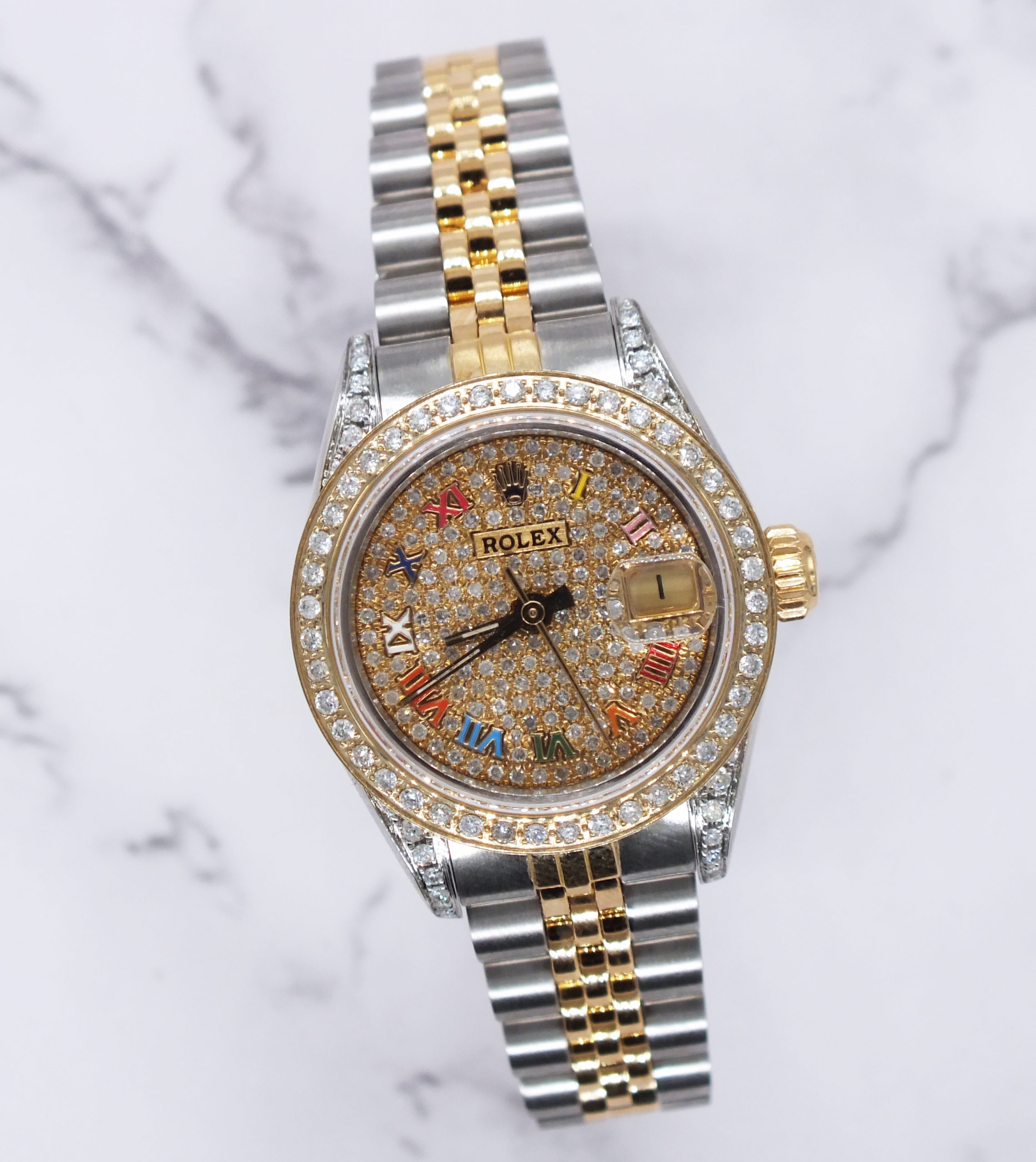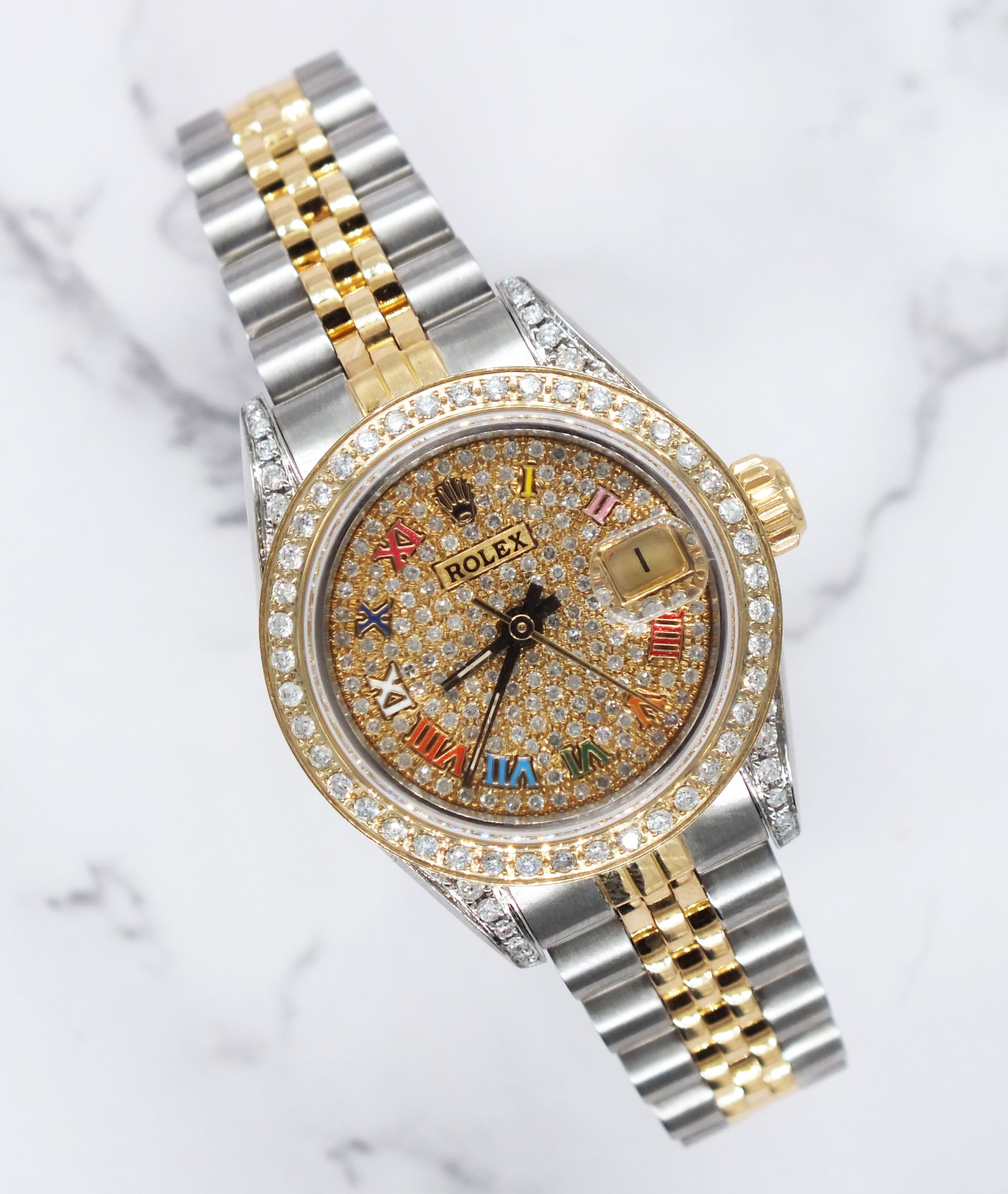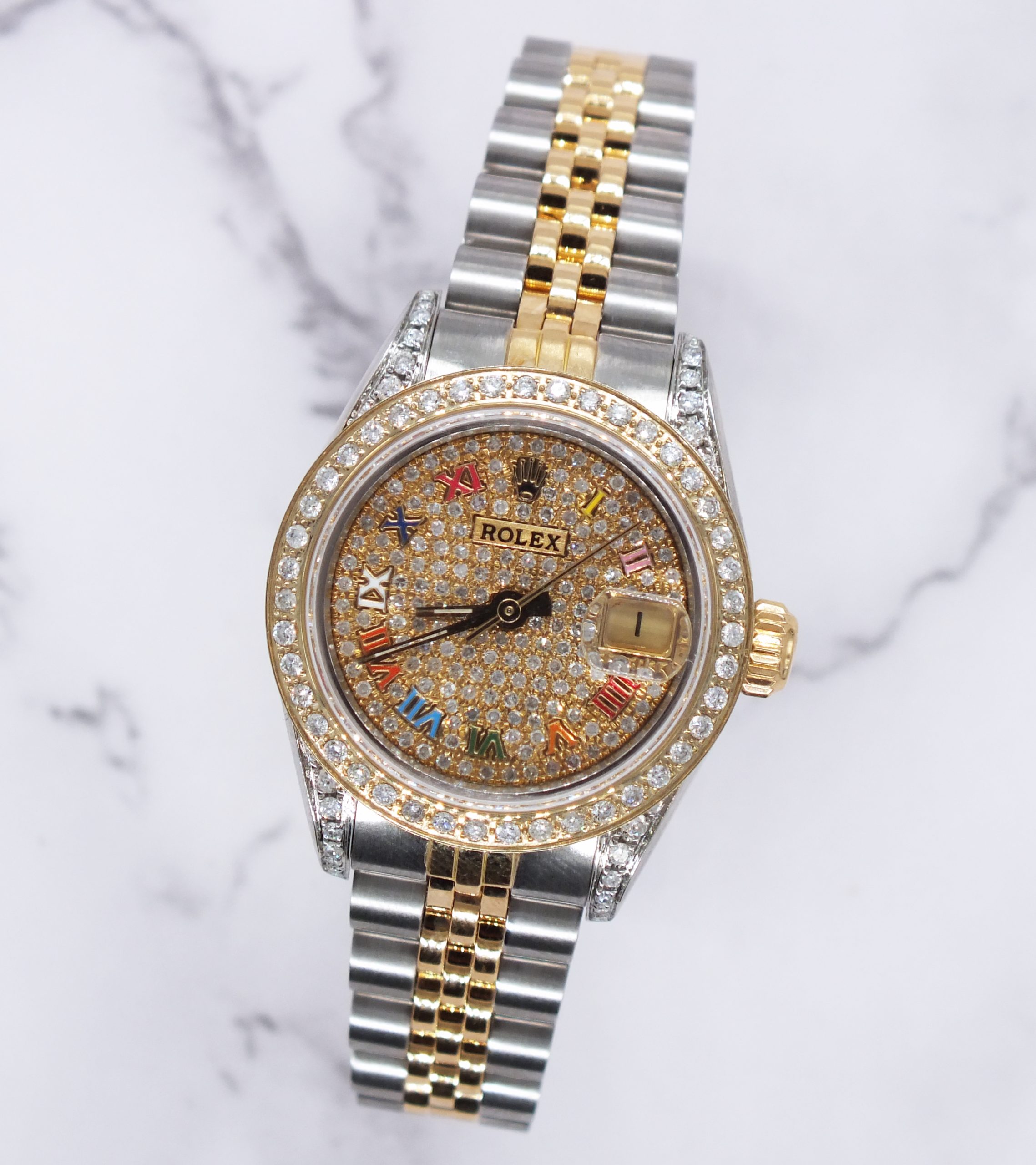 Ladies Rolex Datejust ‘Fully Loaded’ with Rainbow Dial, Bezel & Shoulders – MINT