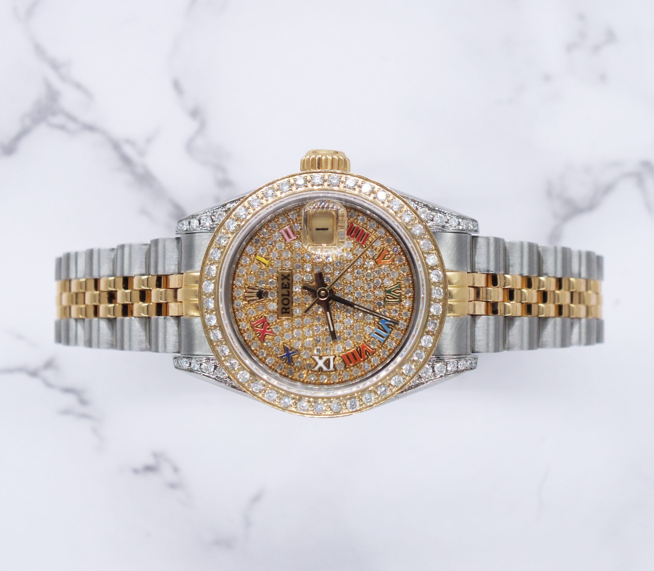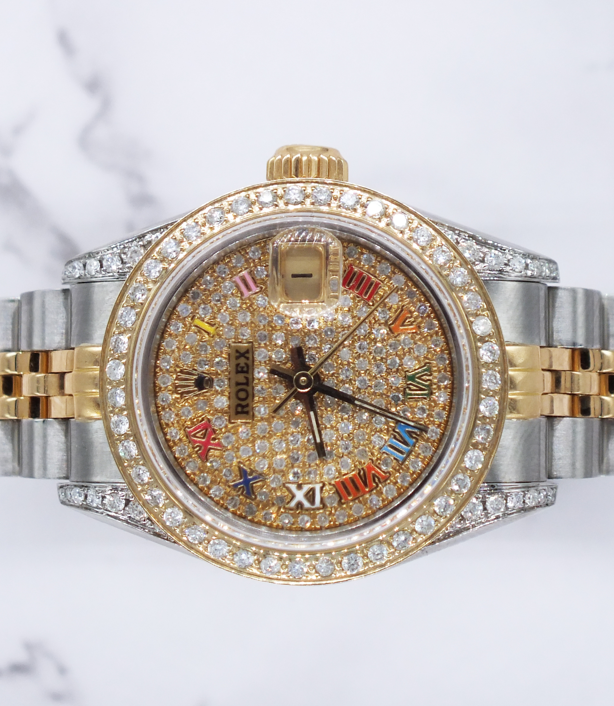 Ladies Rolex Datejust ‘Fully Loaded’ with Rainbow Diamond Dial, Bezel & Shoulders – MINT