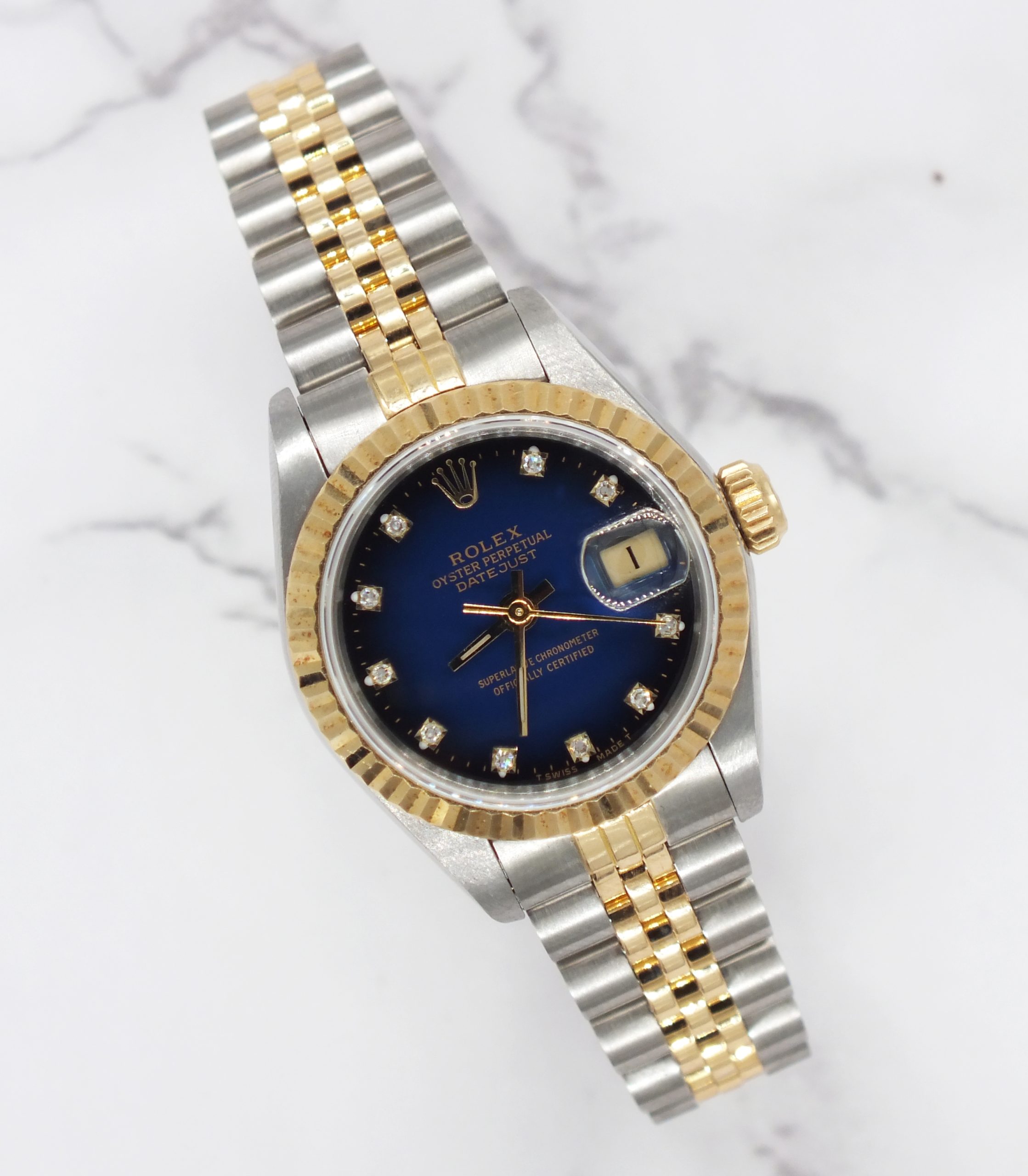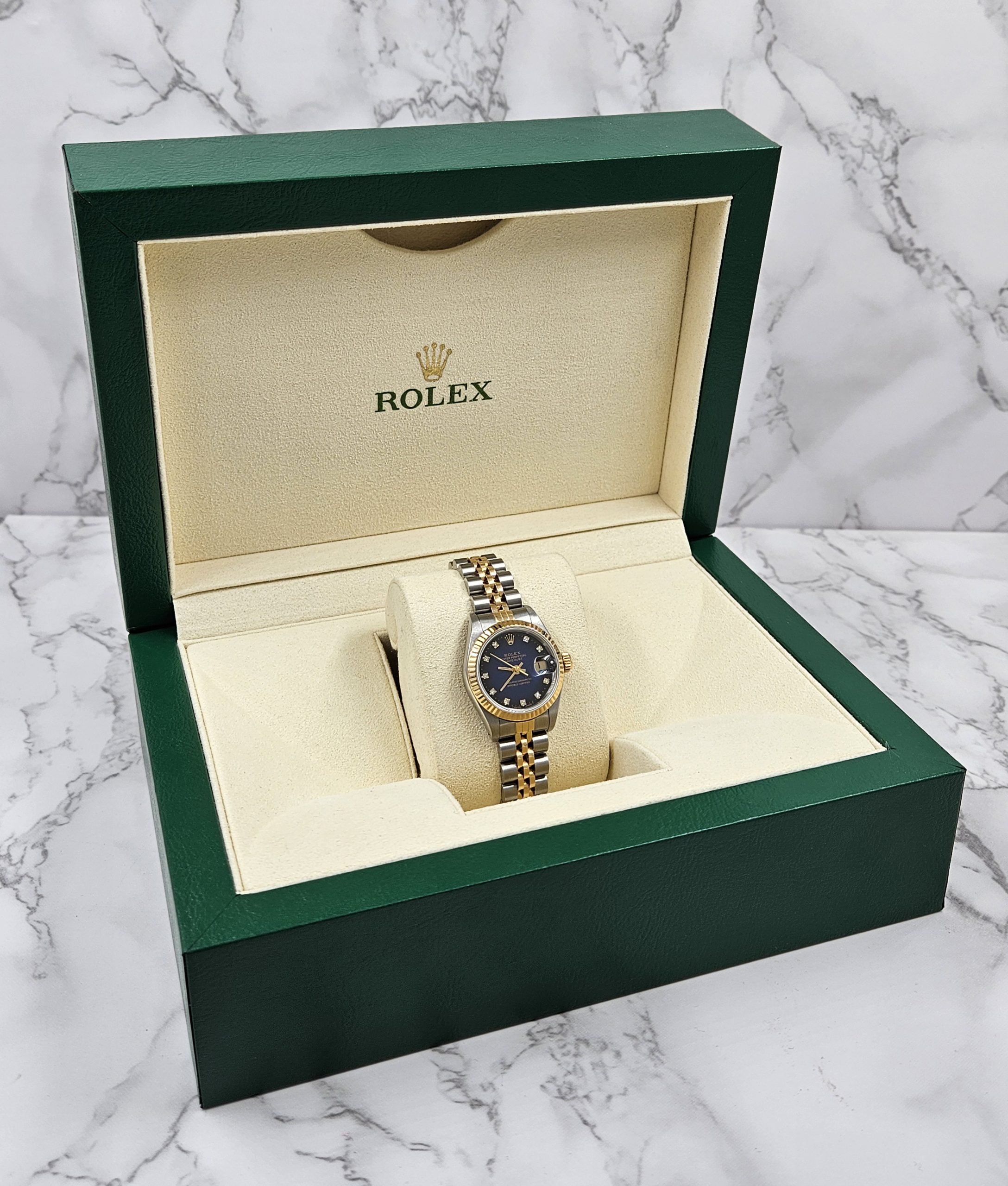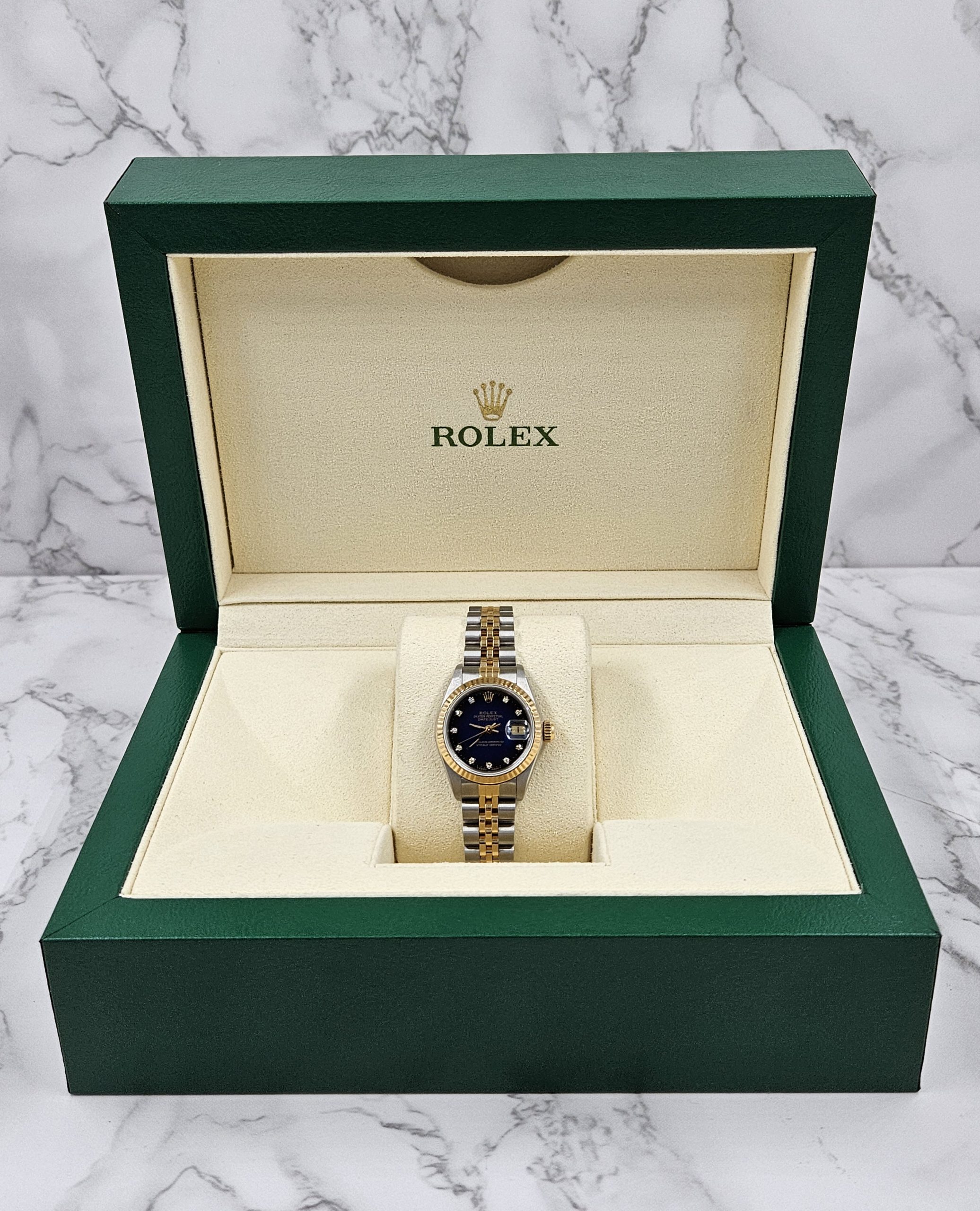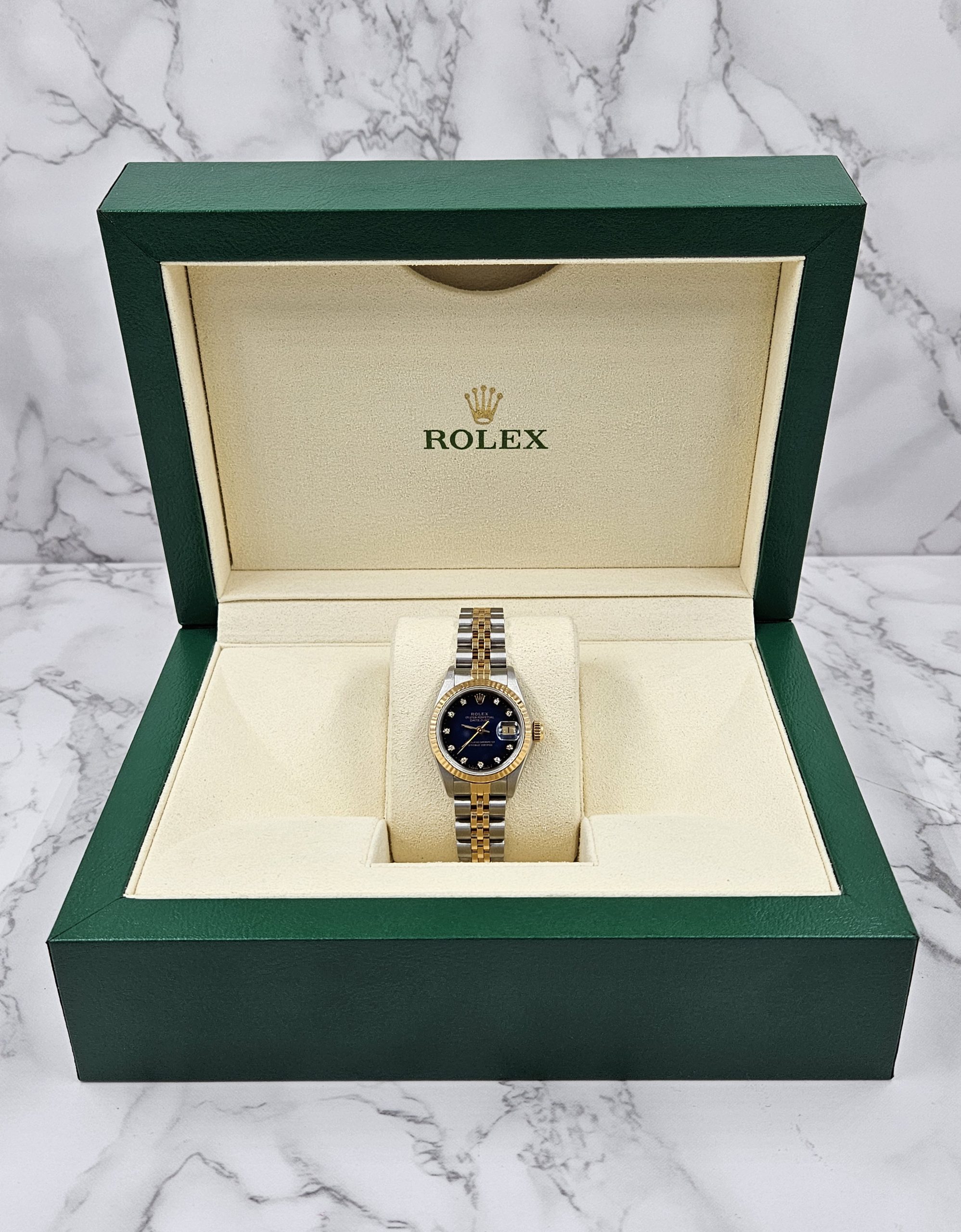 Stunning Ladies Steel & Gold Rolex Datejust with Factory Blue Vignette Diamond Dial – Box and Papers