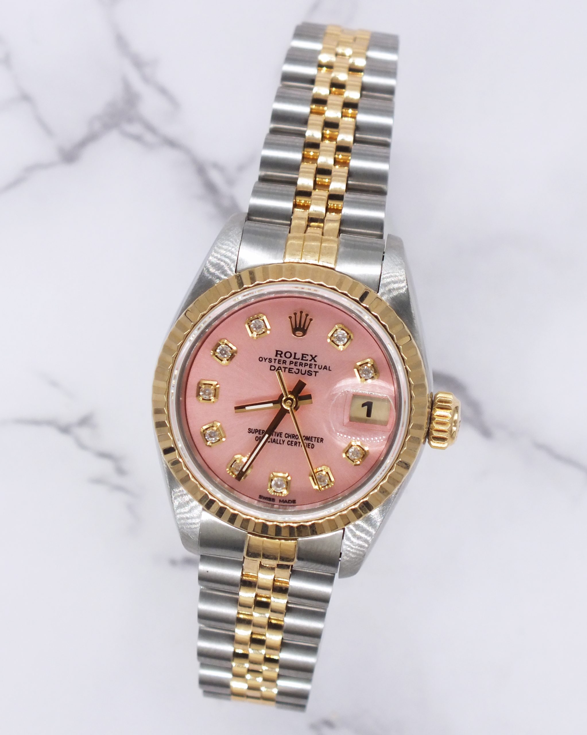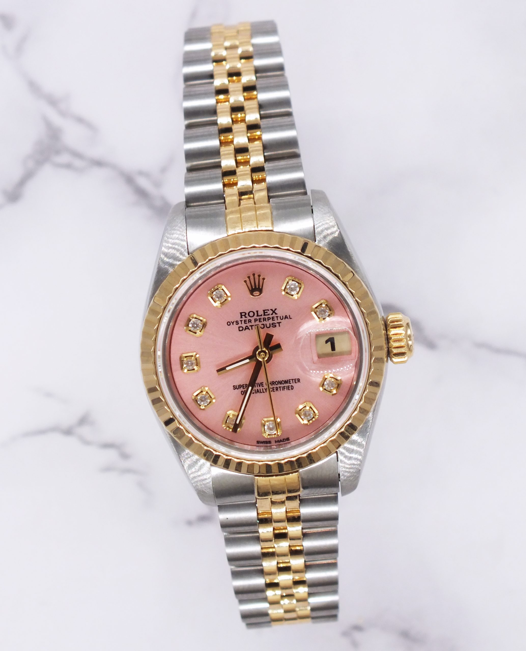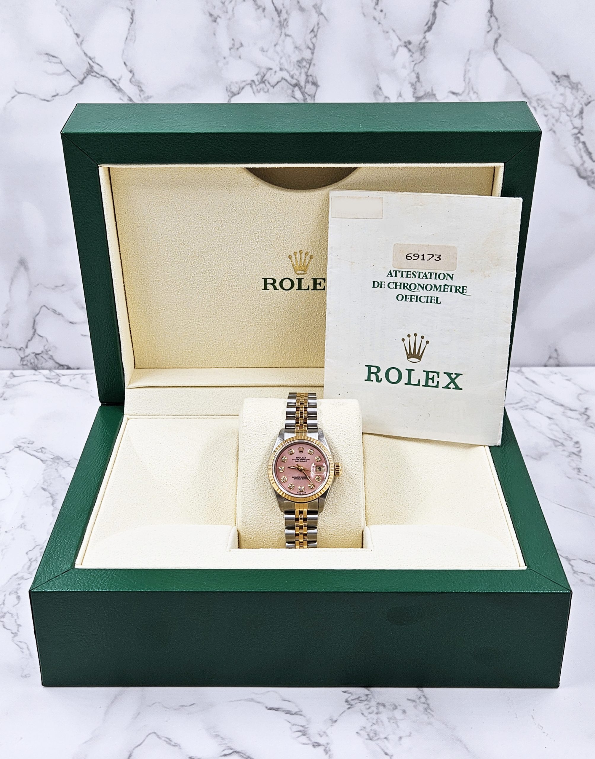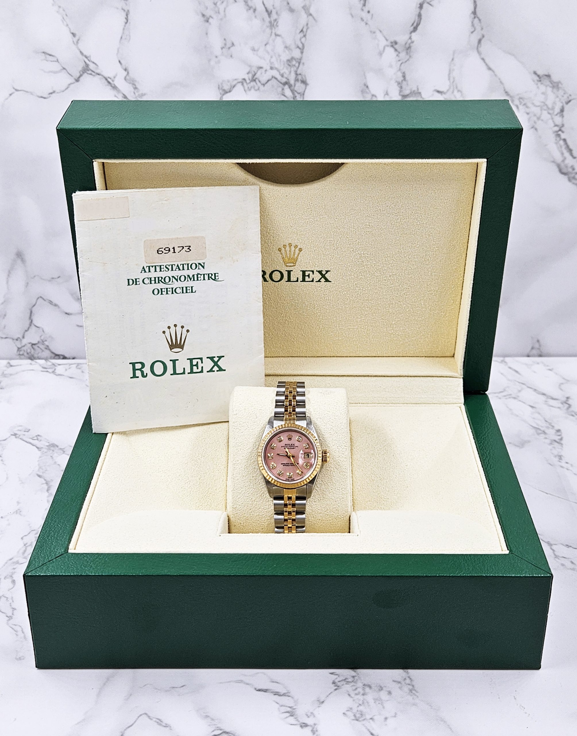 Stunning Ladies Steel & Gold Rolex Datejust with Pink MOP Diamond Dial – Box and Papers