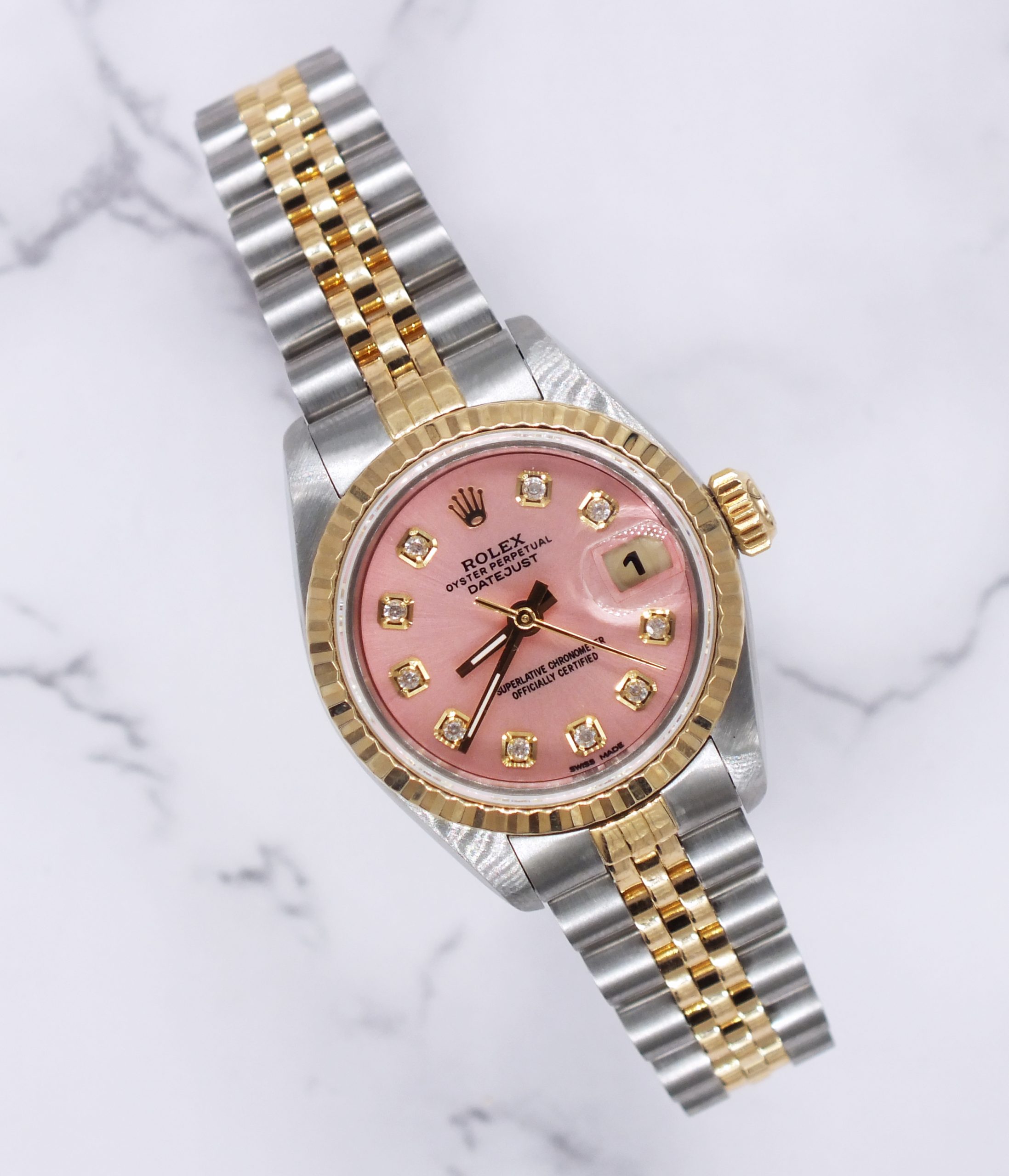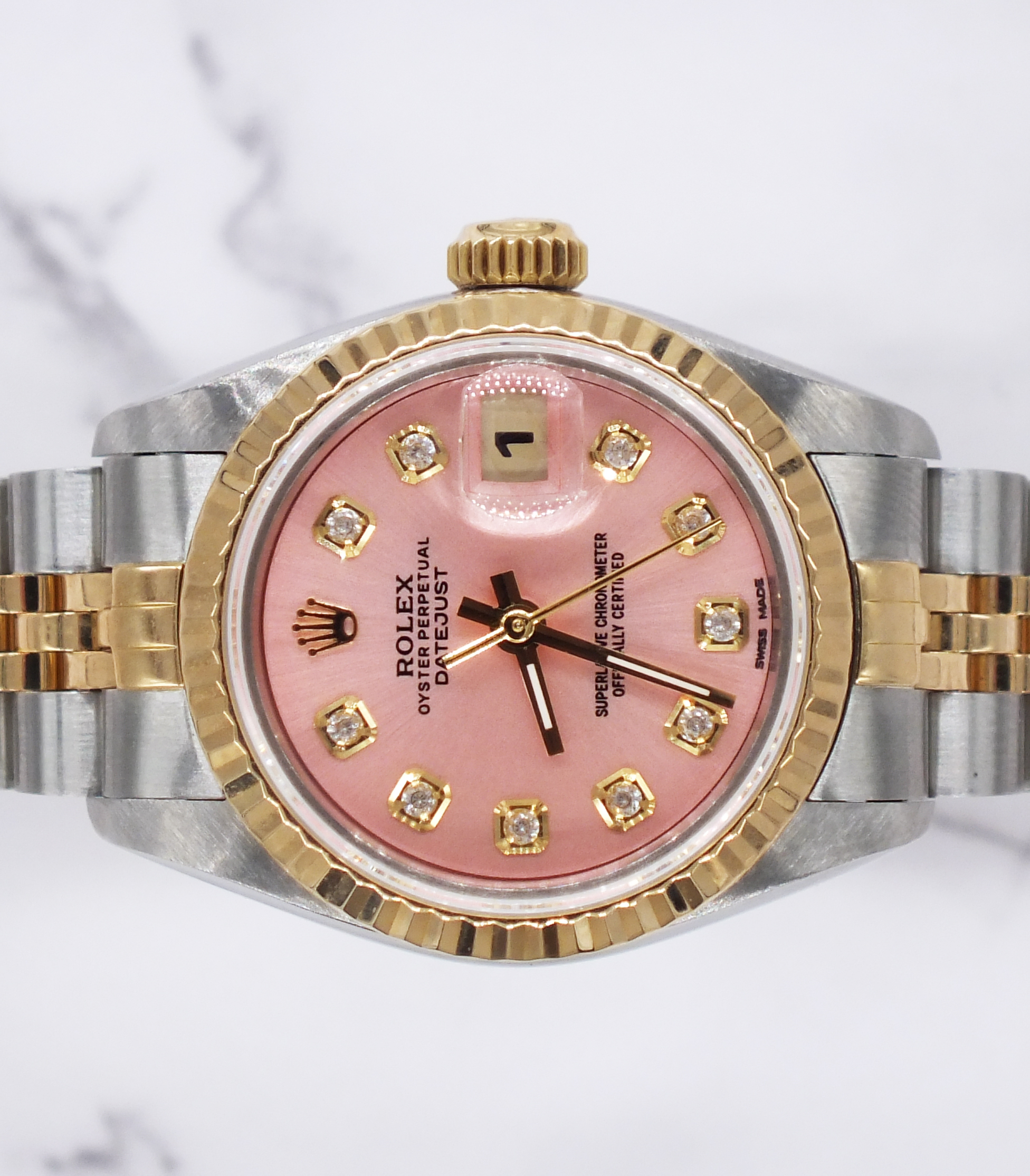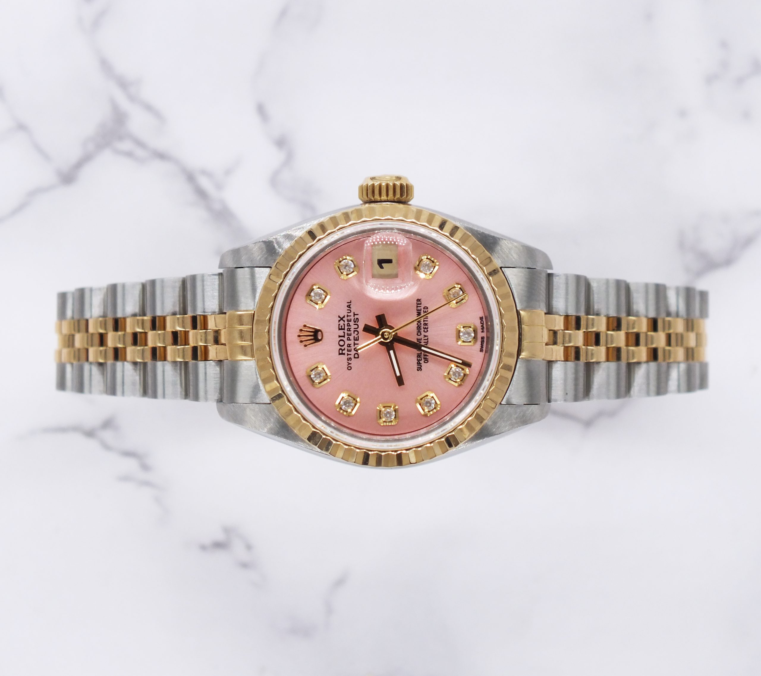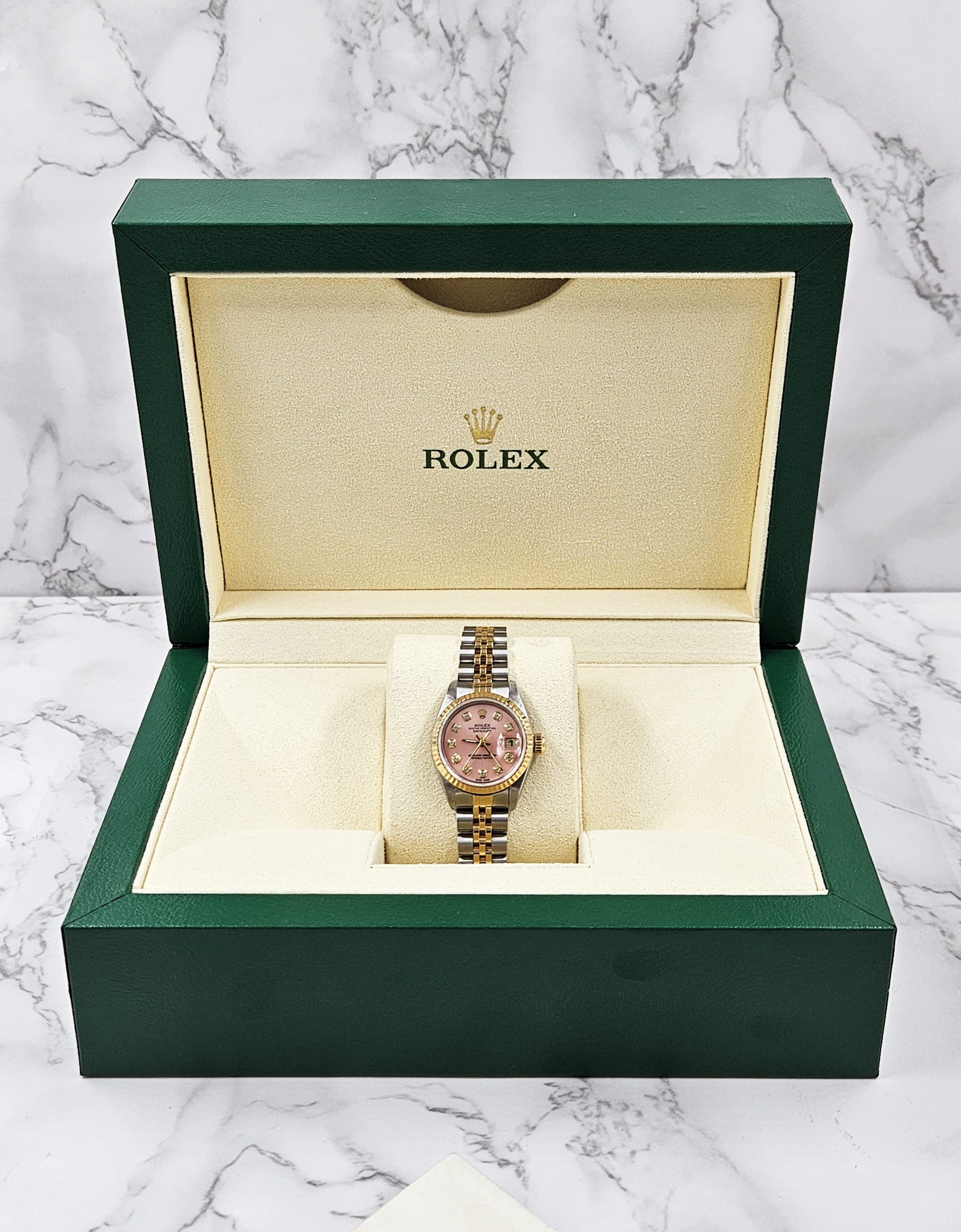 Stunning Ladies Steel & Gold Rolex Datejust with Pink MOP Diamond Dial – Box and Papers