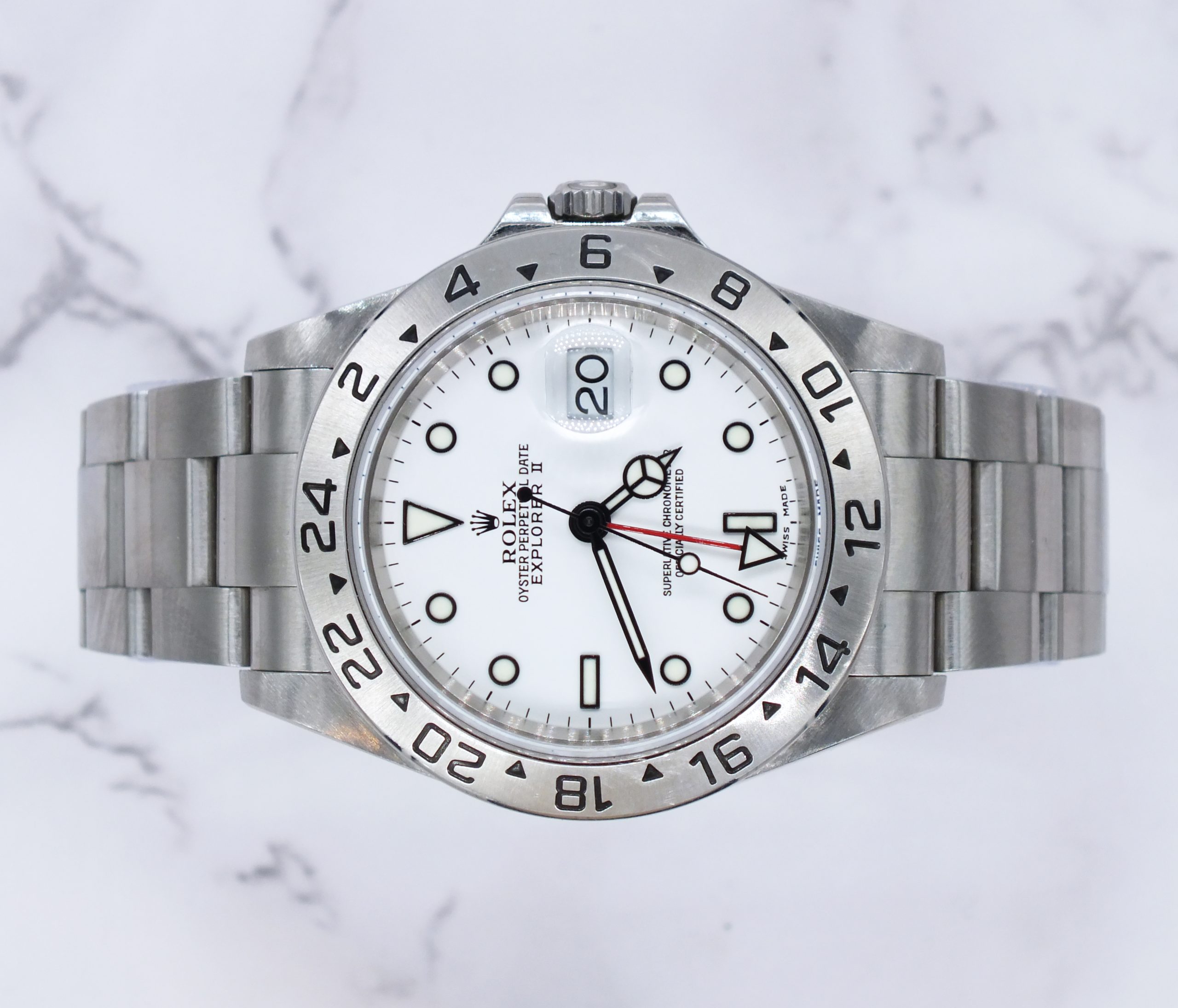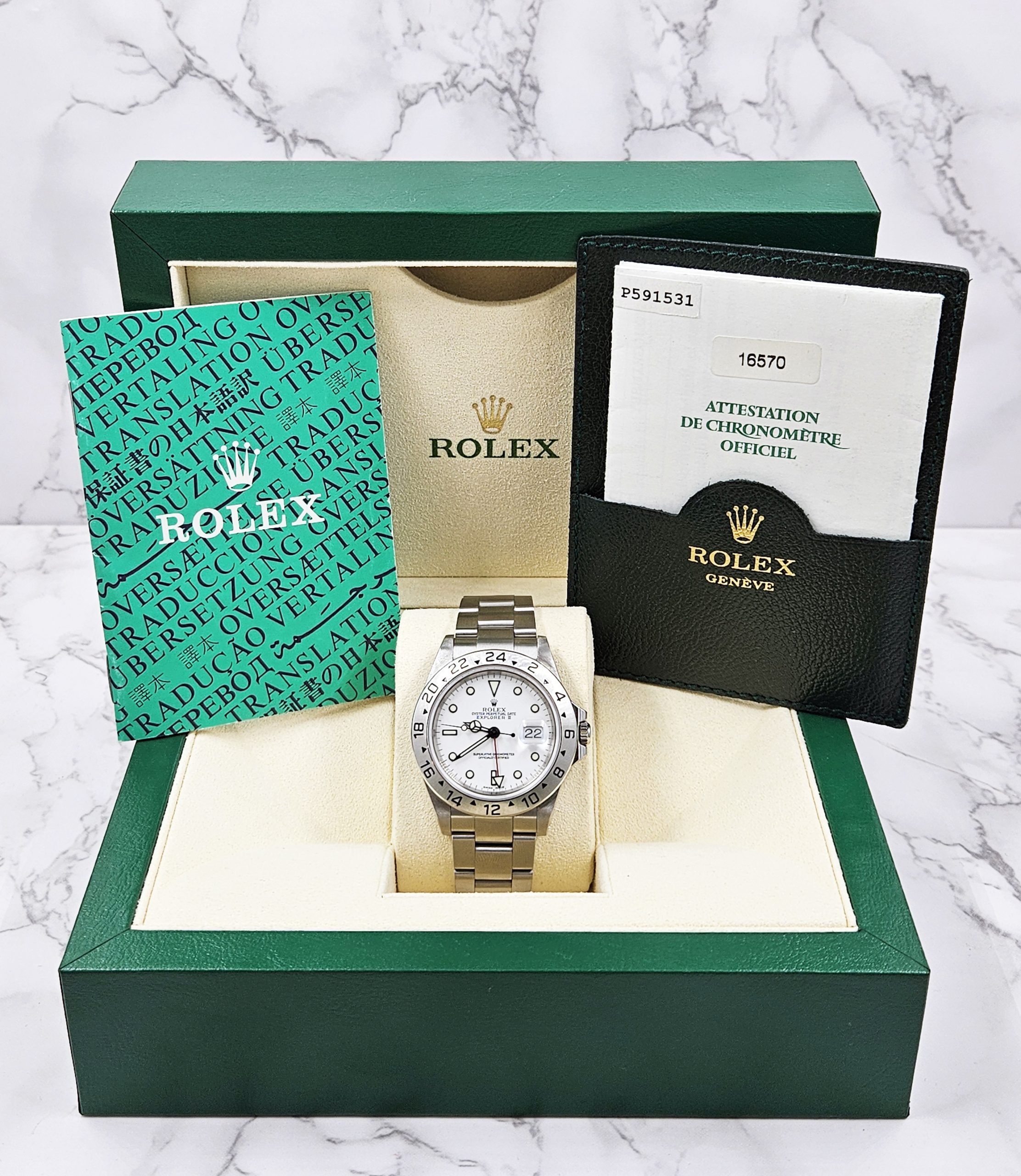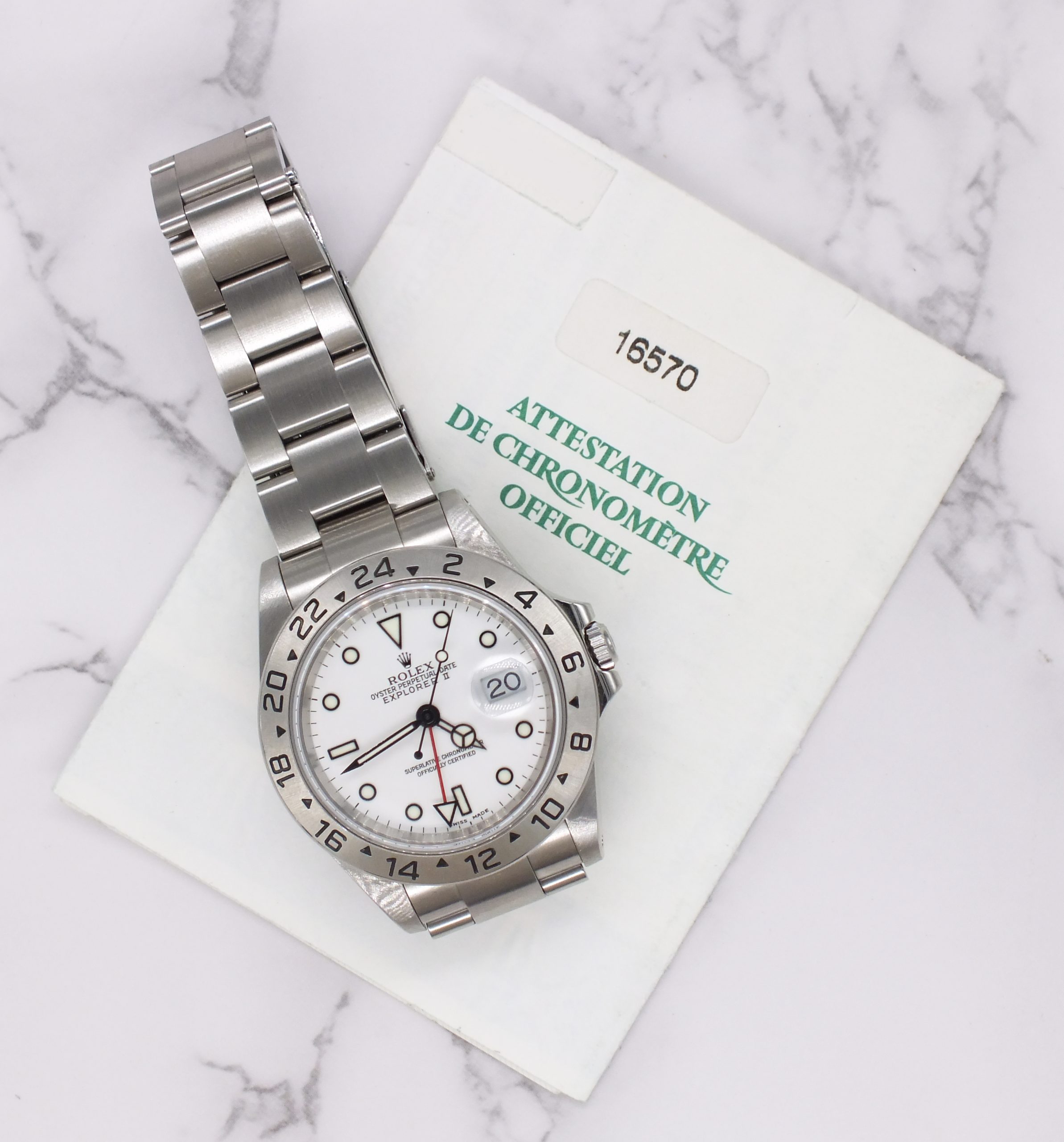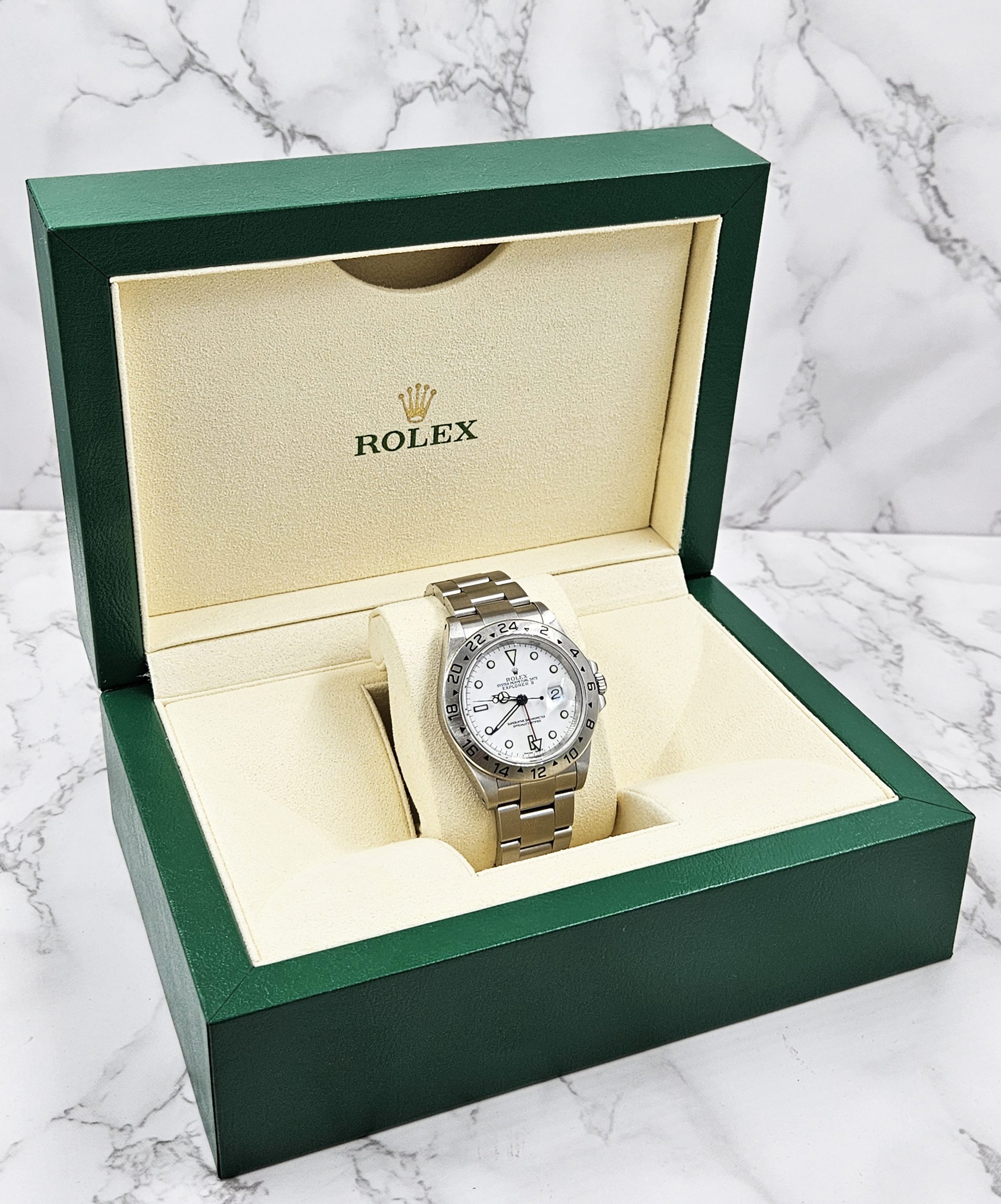 Men’s Rolex Explorer II 16570 with White Dial – Box and Papers – 2001