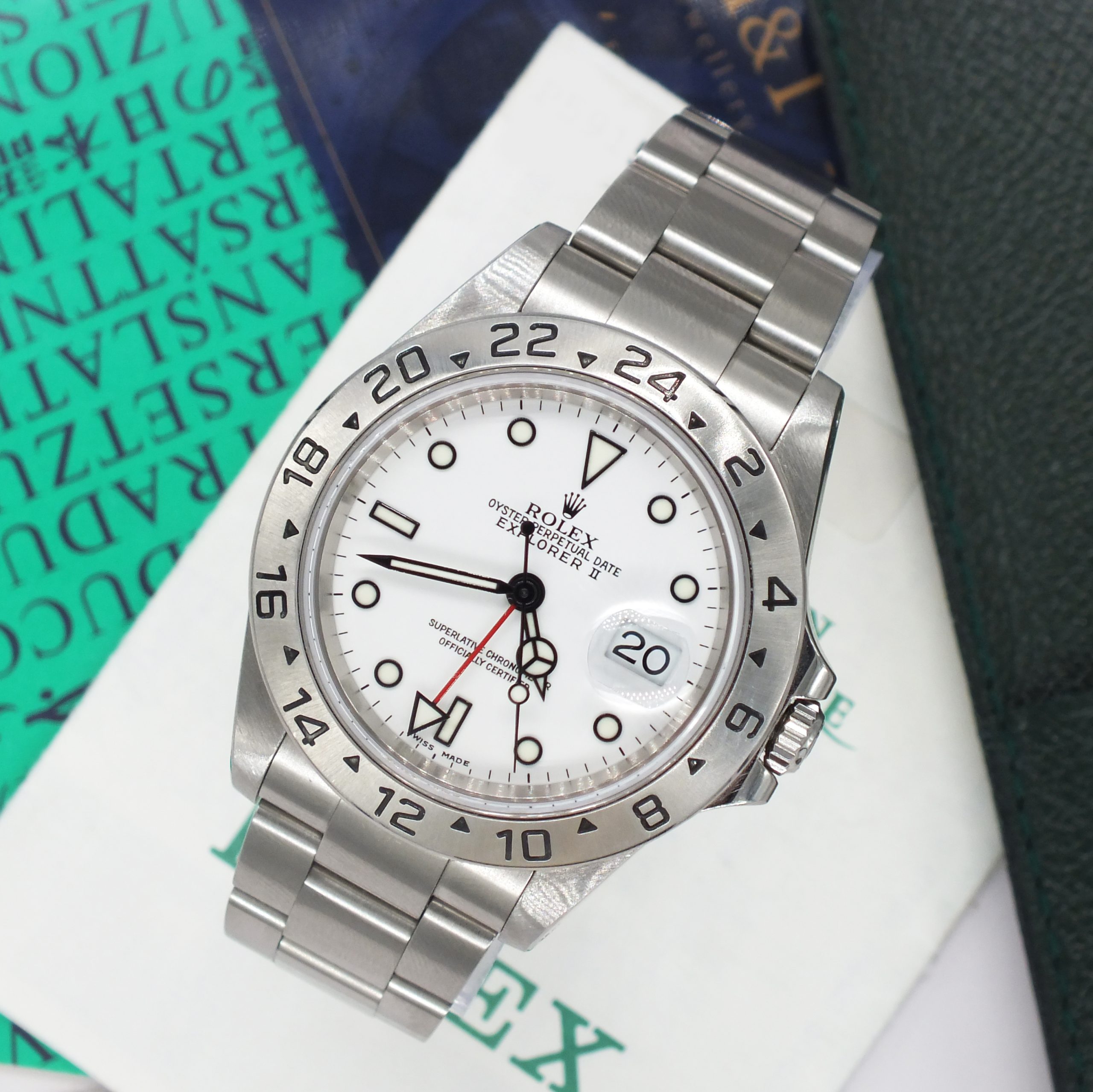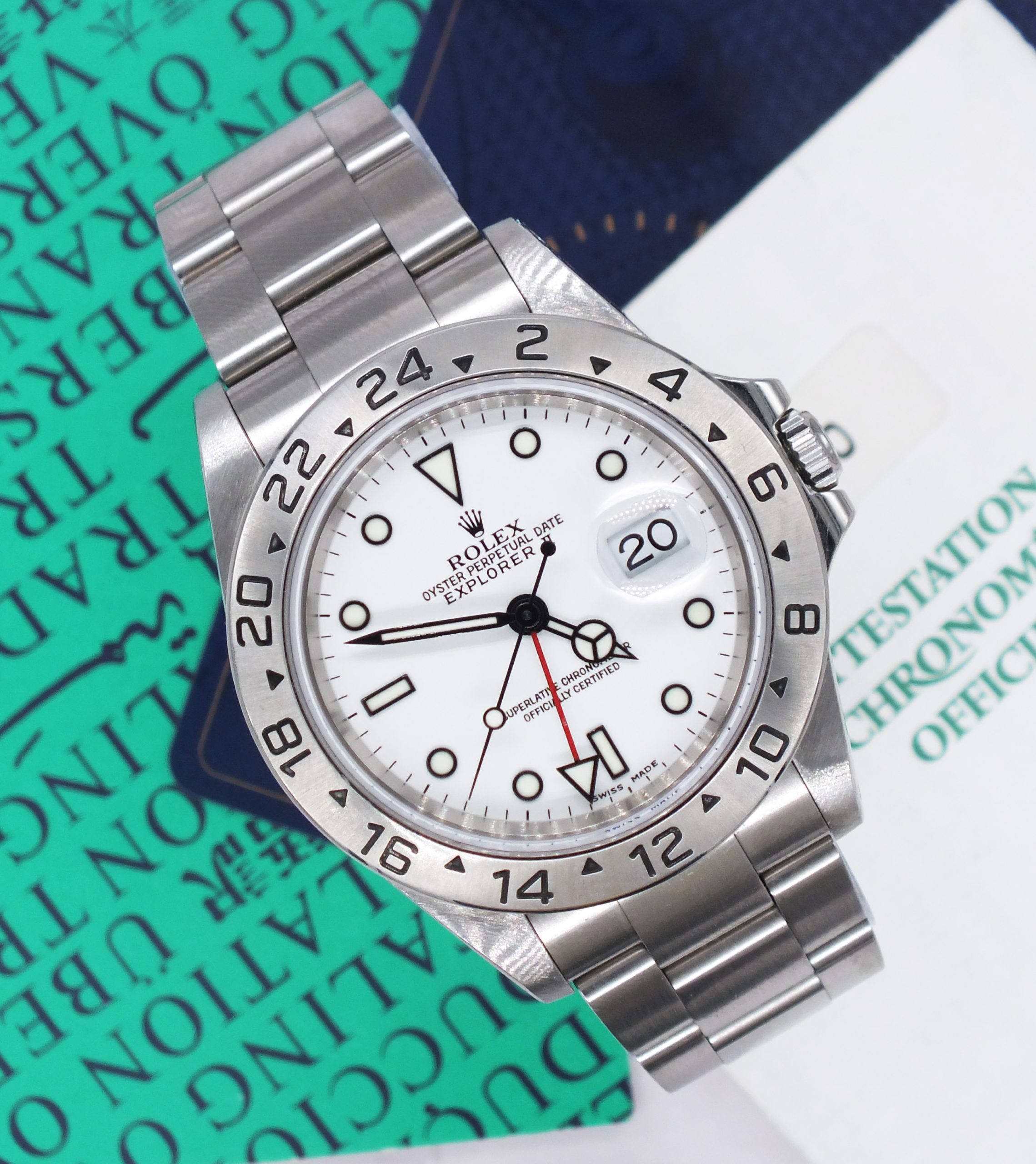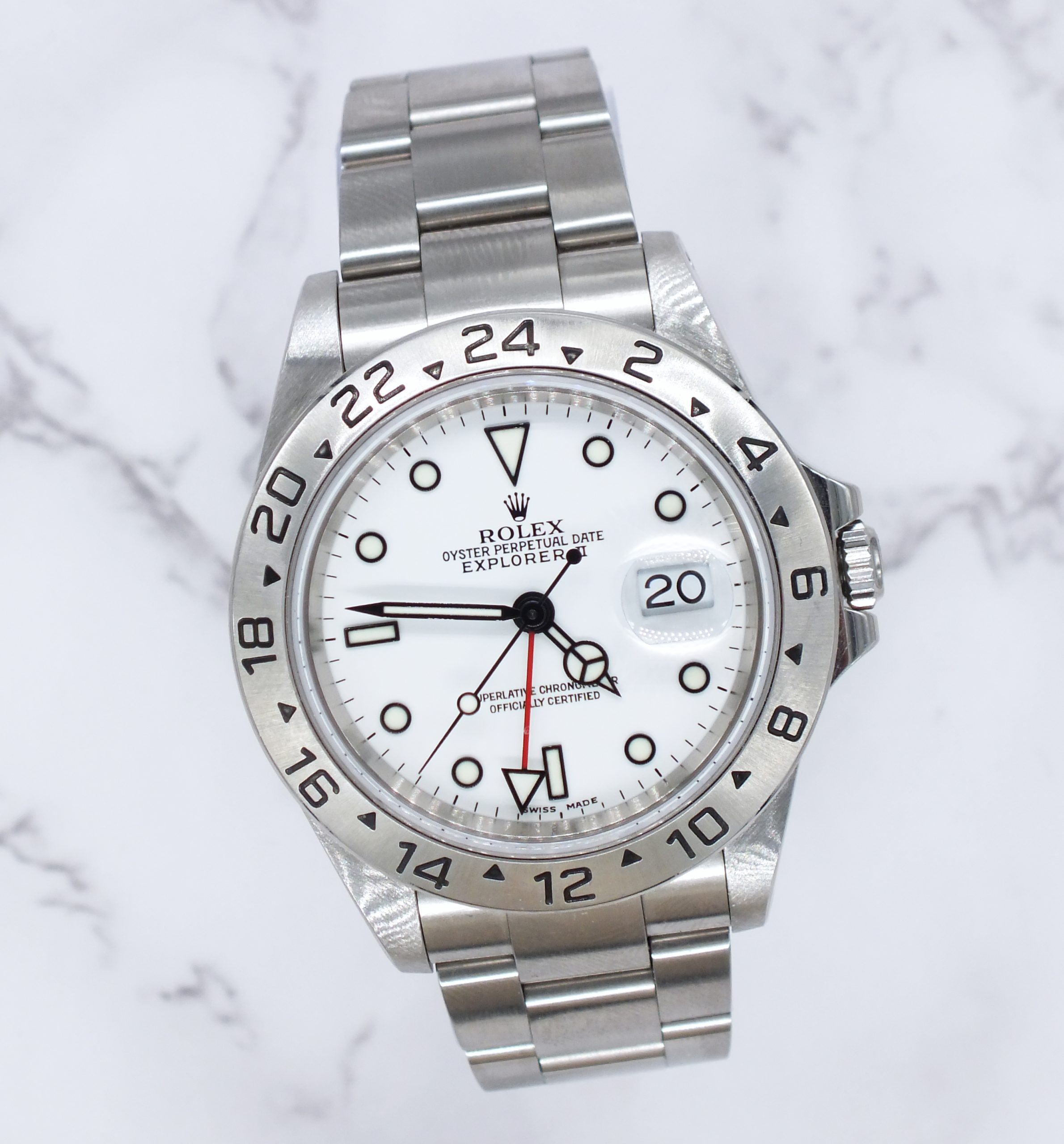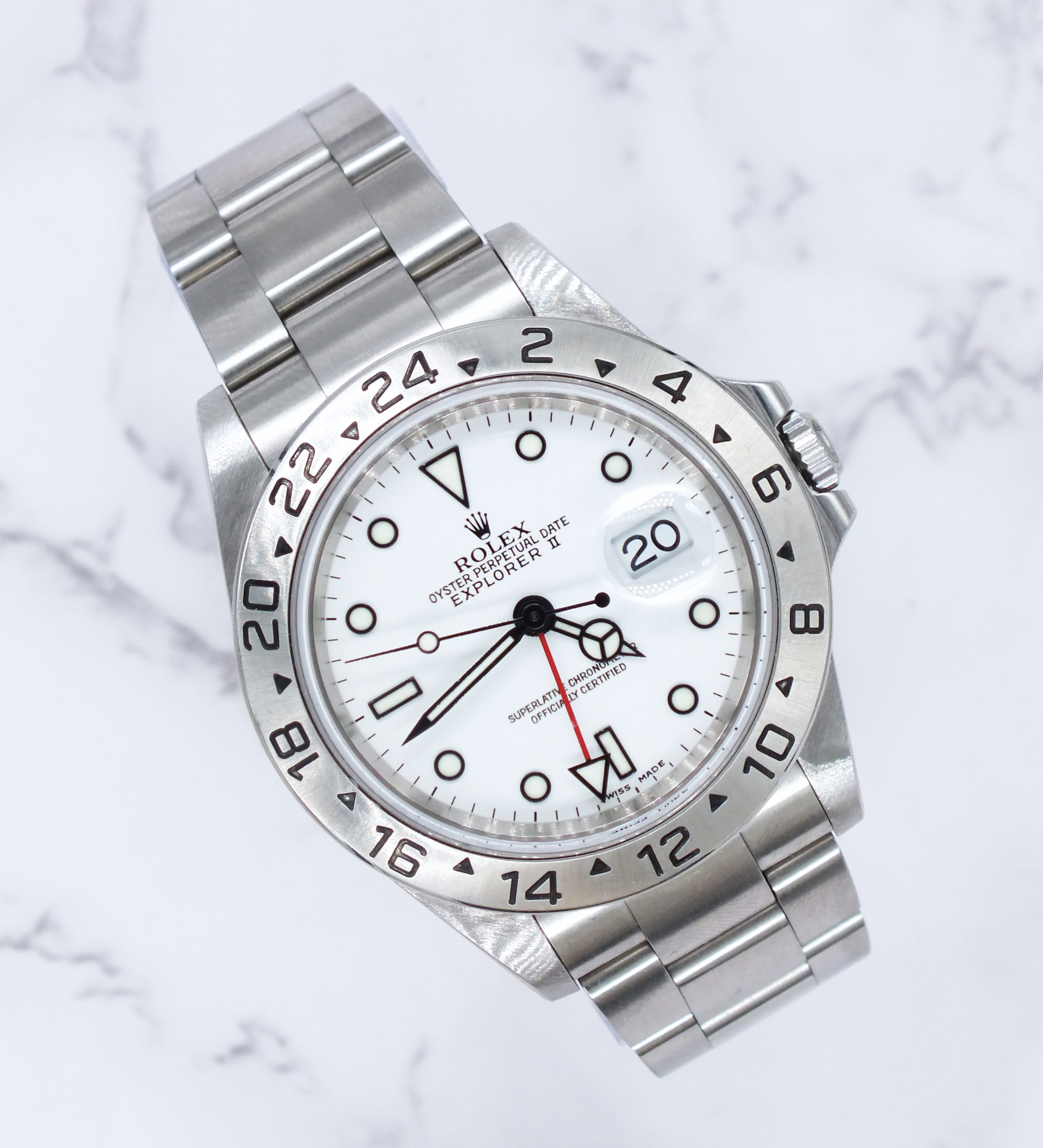 Men’s Rolex Explorer II 16570 with White Dial – Box and Papers – 2001