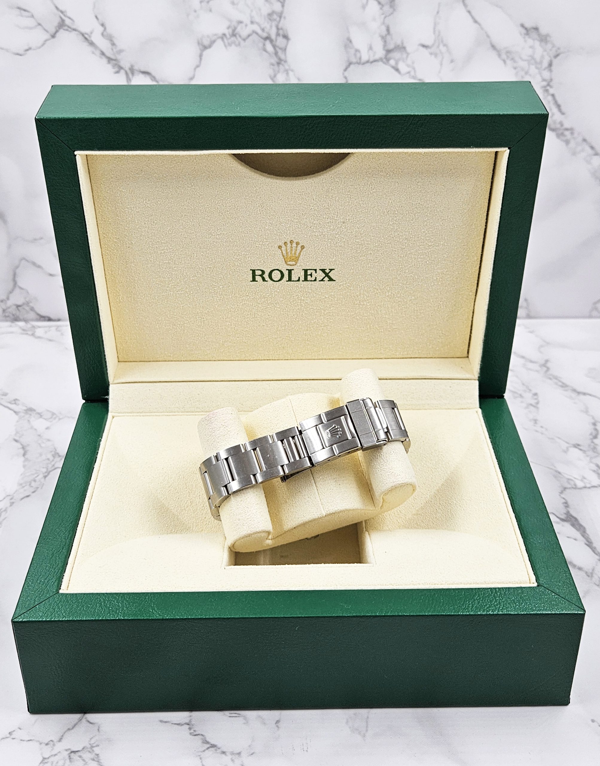 Box and papers: Original Rolex box along with a detailed paperwork check list including our very own letter headed invoice / receipt, a certificate of authenticity, lost and stolen register check, insurance valuation and 12-month warranty card.