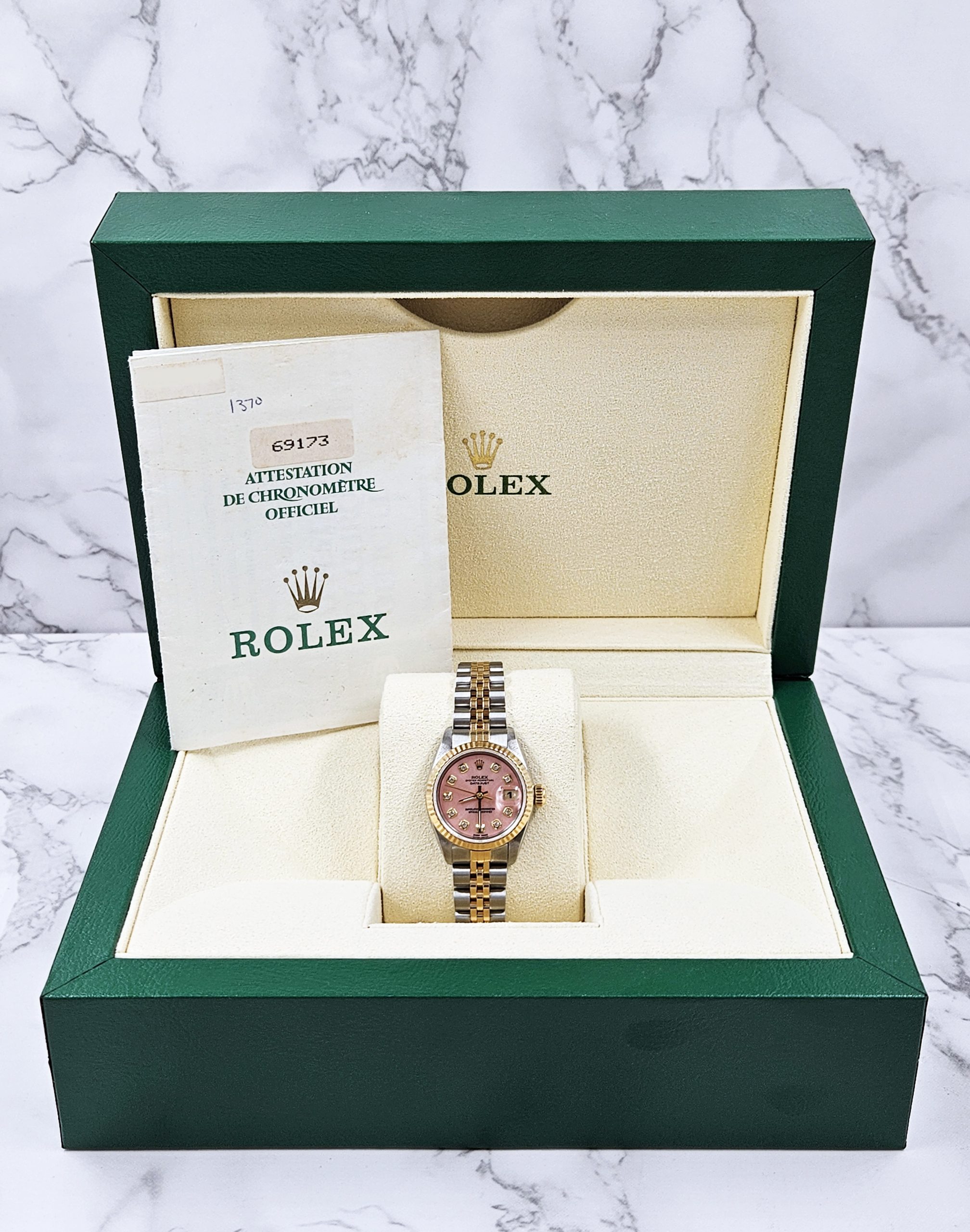 Stunning Ladies Steel & Gold Rolex Datejust with pINK Diamond Dial – Box and Papers