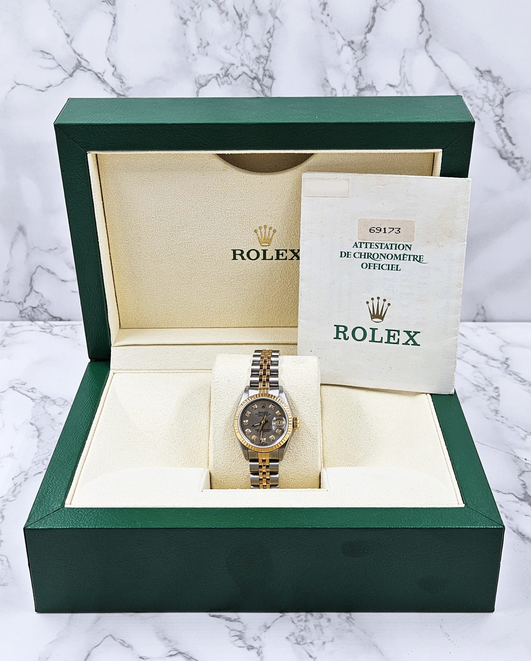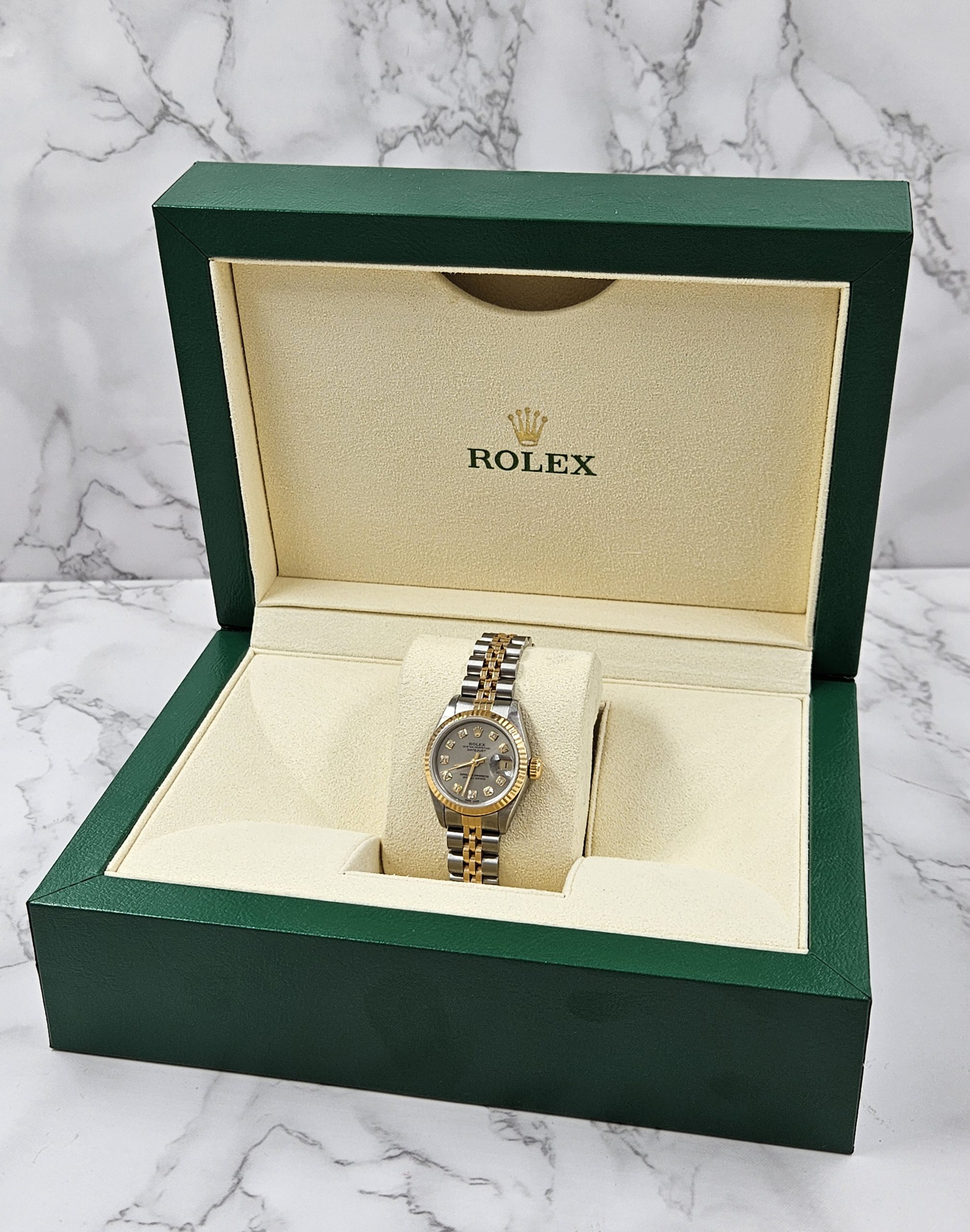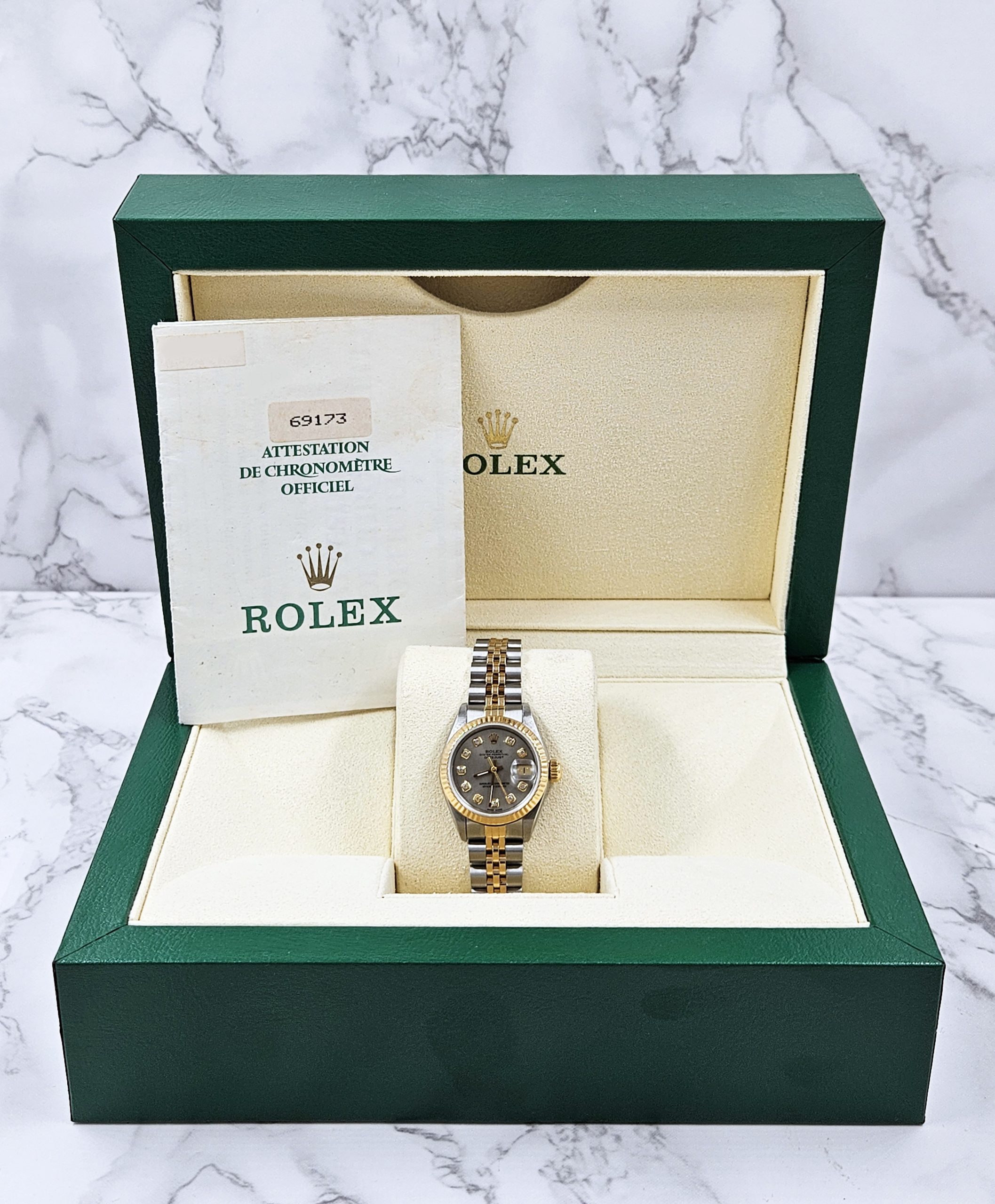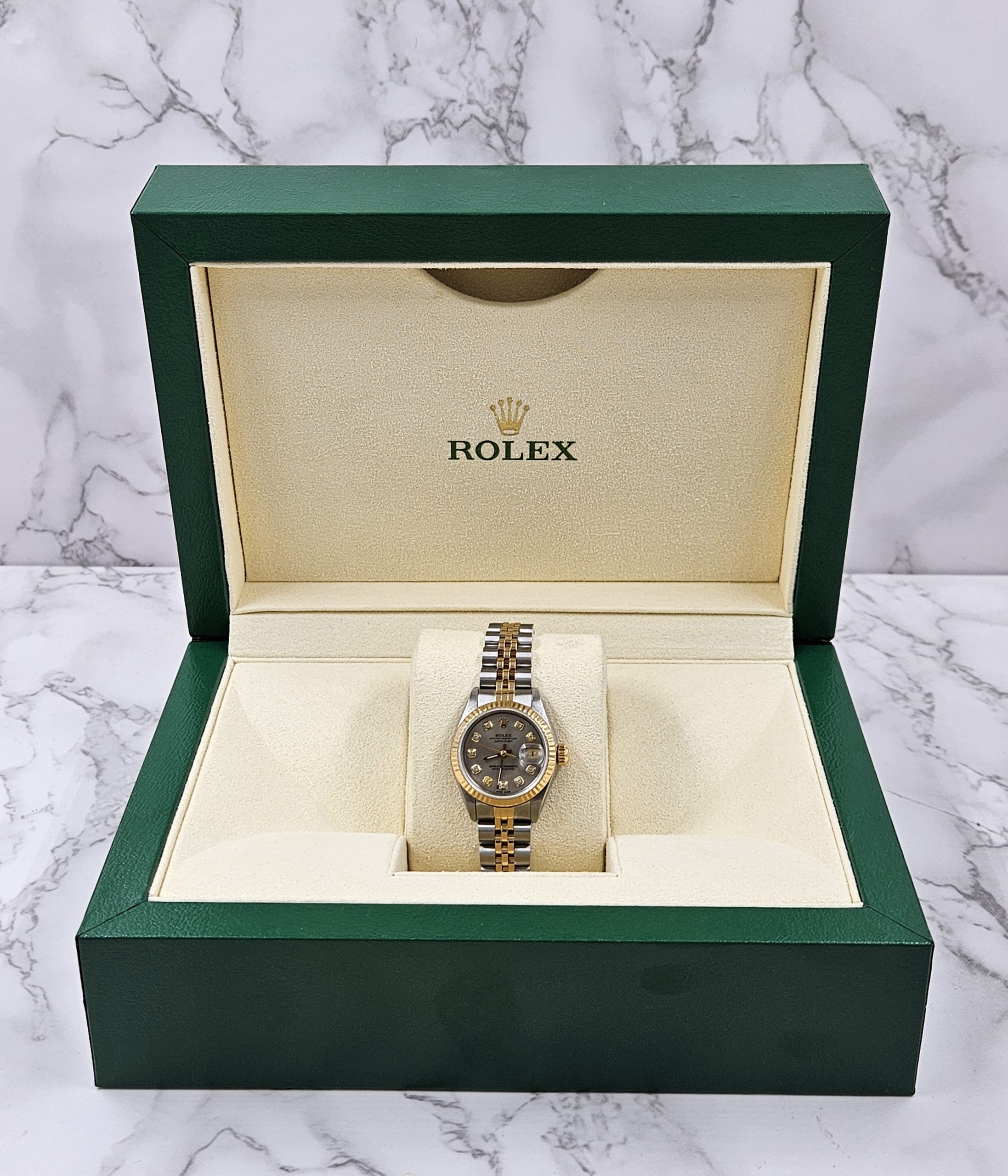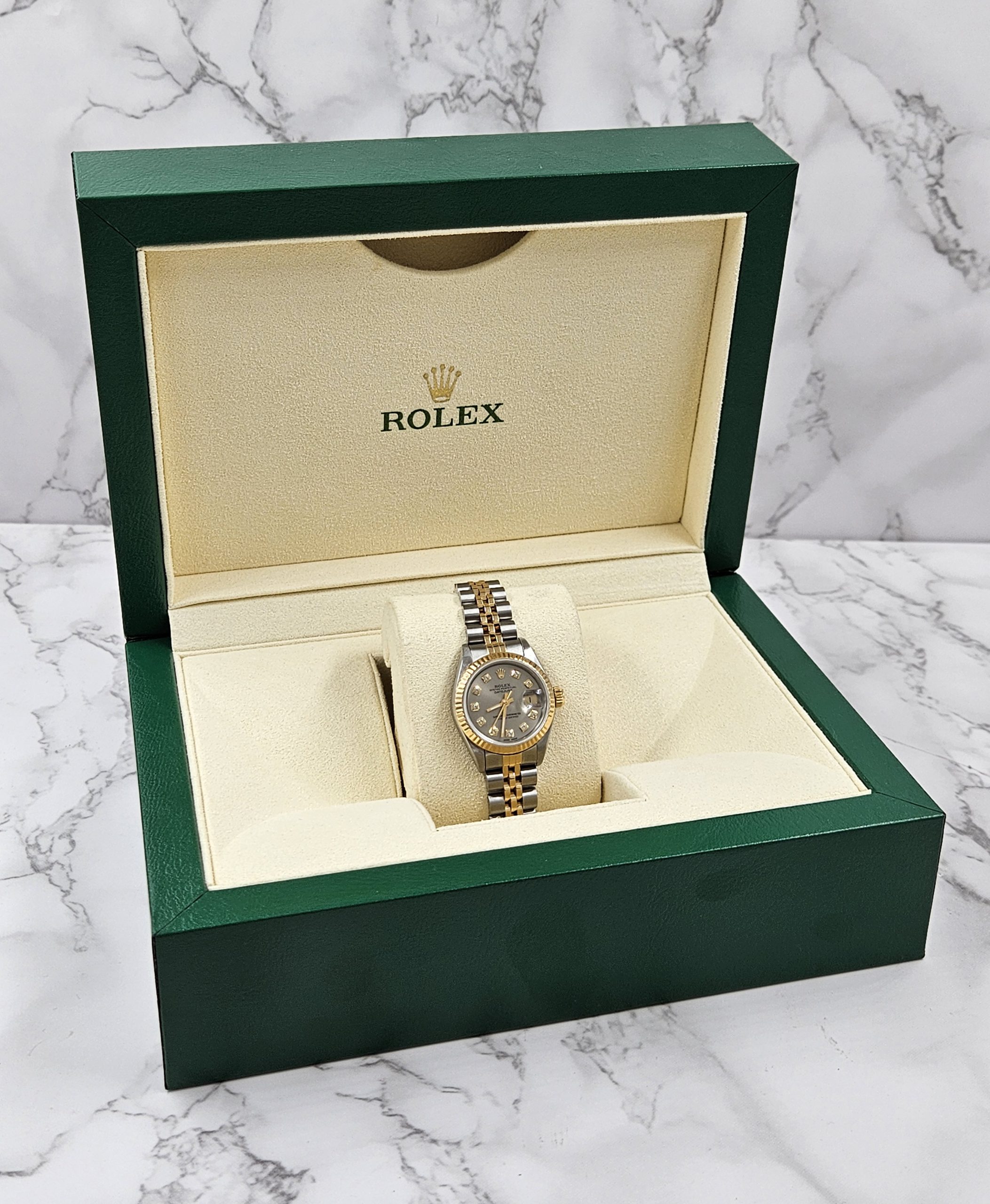 Stunning Ladies Steel & Gold Rolex Datejust with Slate Grey Diamond Dial – Box and Papers