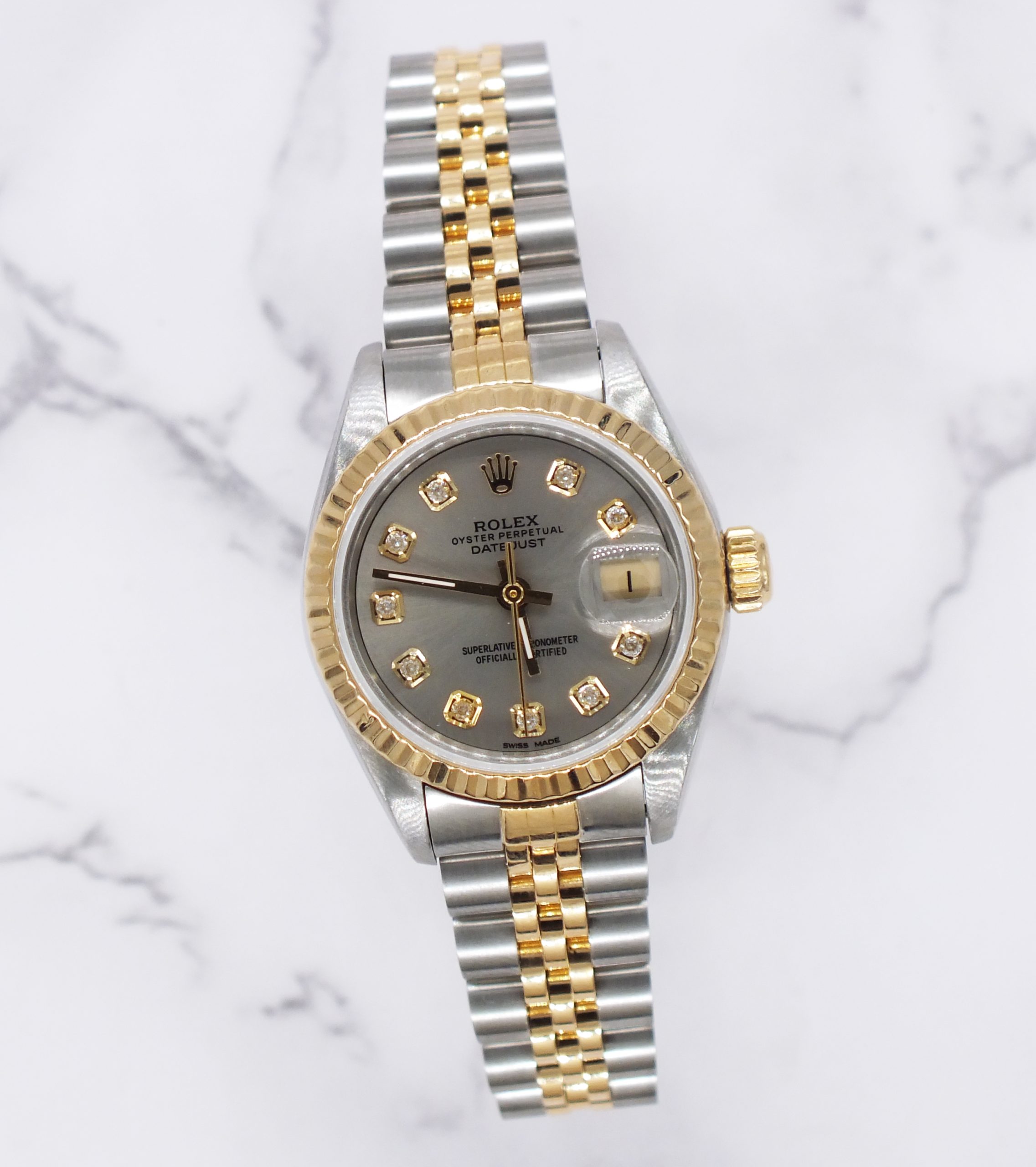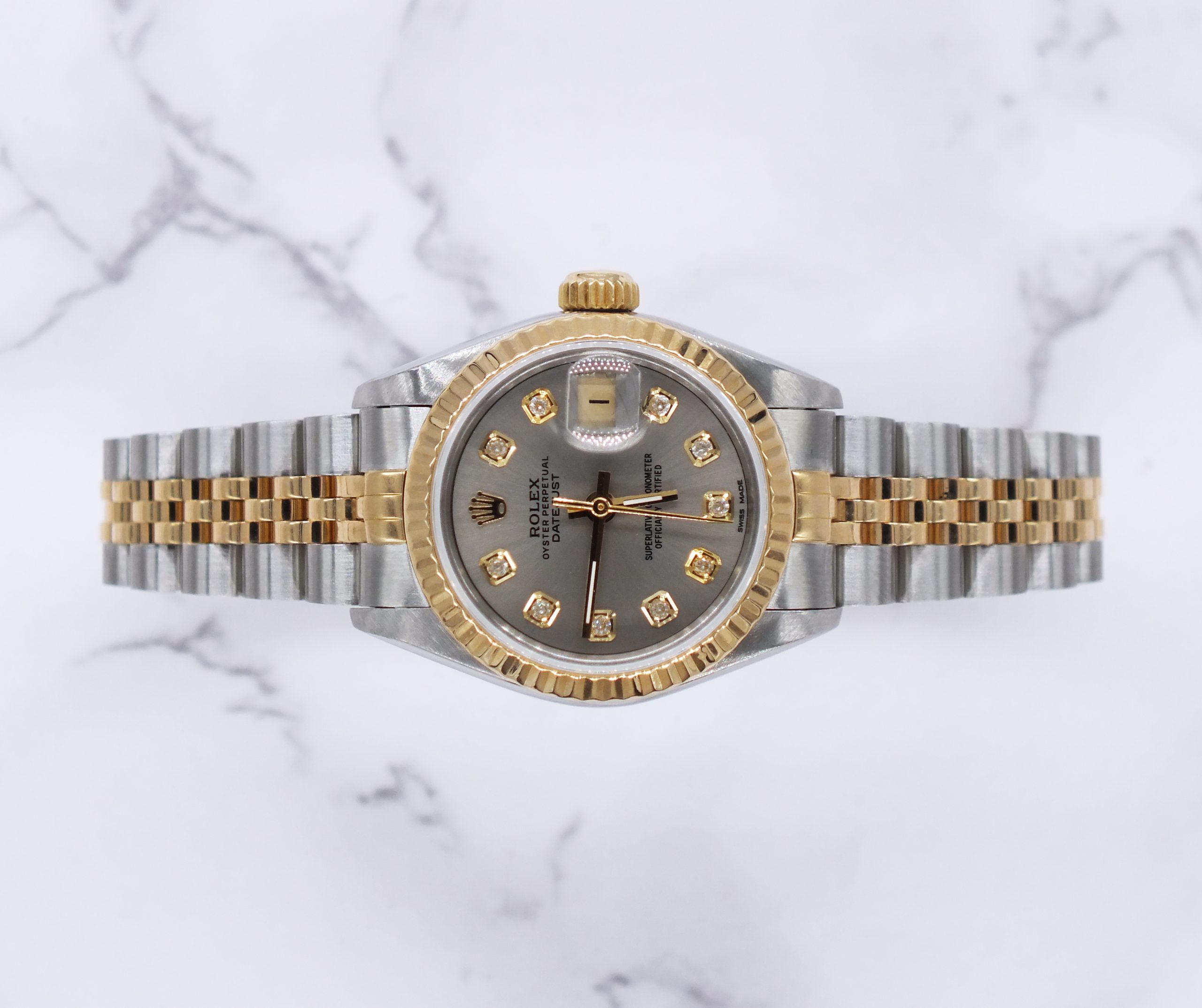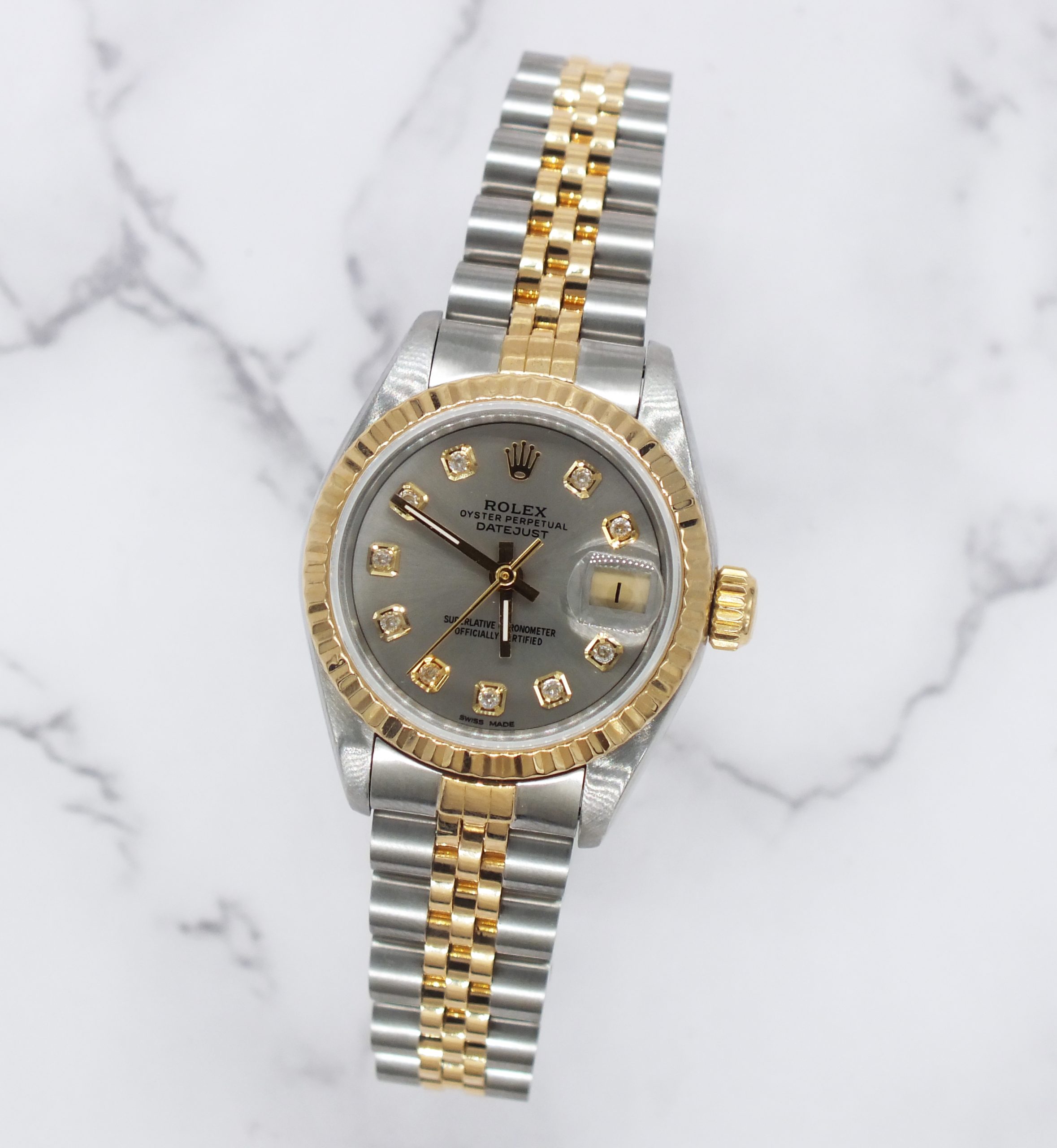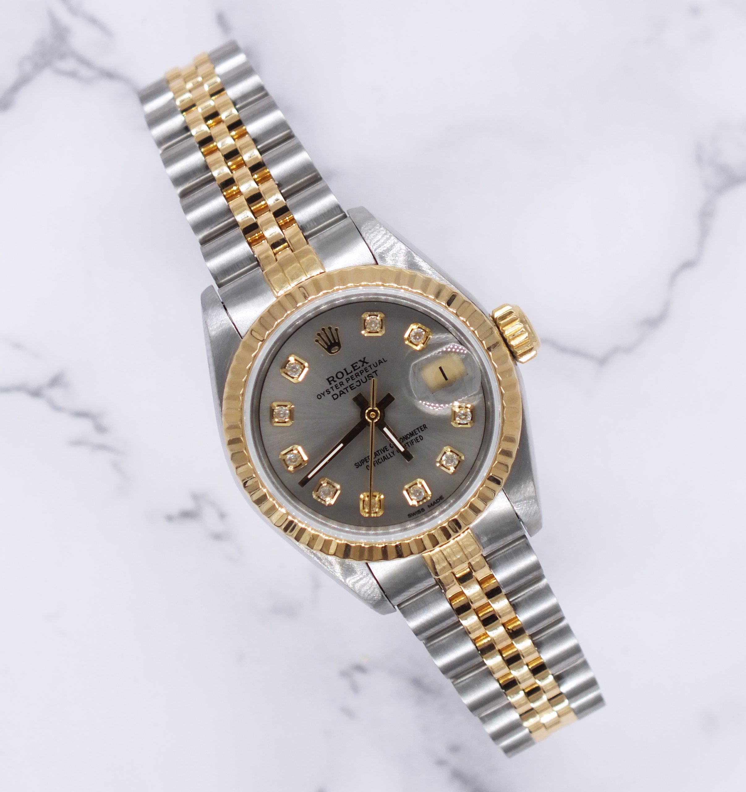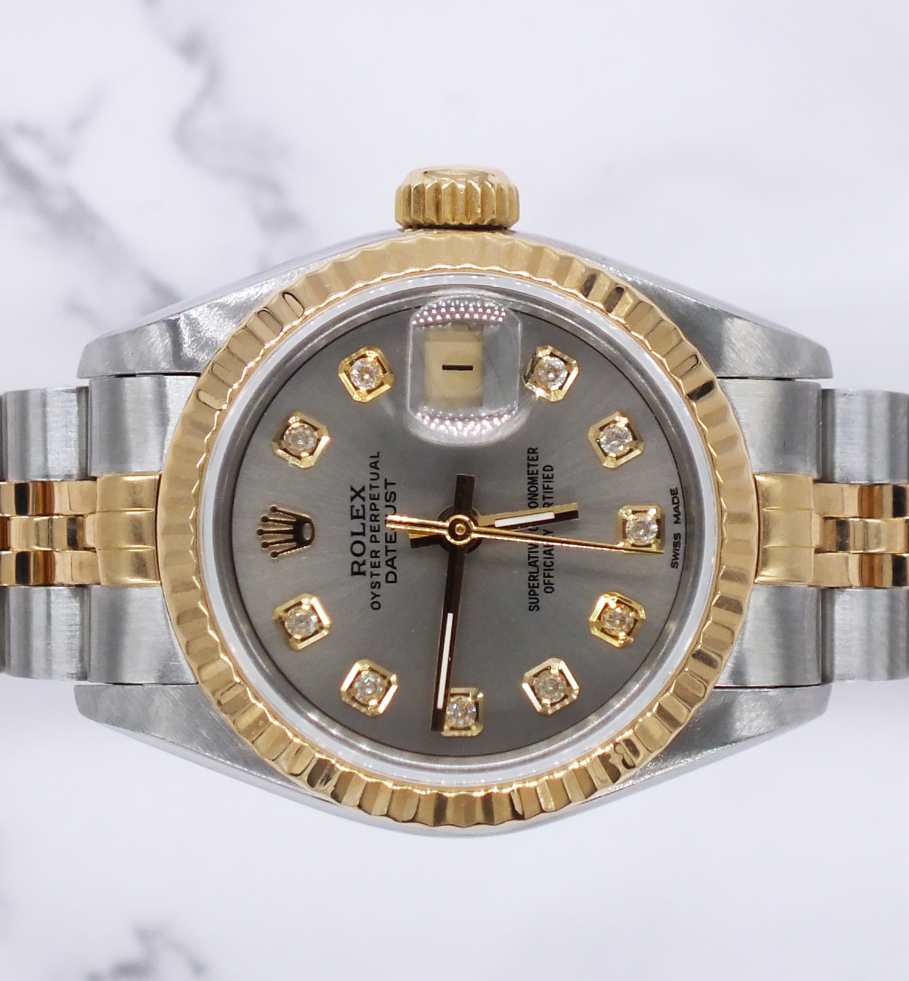 Stunning Ladies Steel & Gold Rolex Datejust with Slate Grey Diamond Dial – Box and Papers