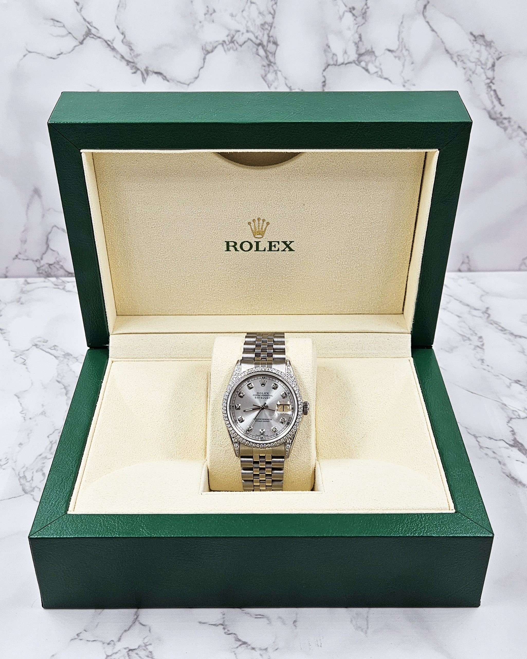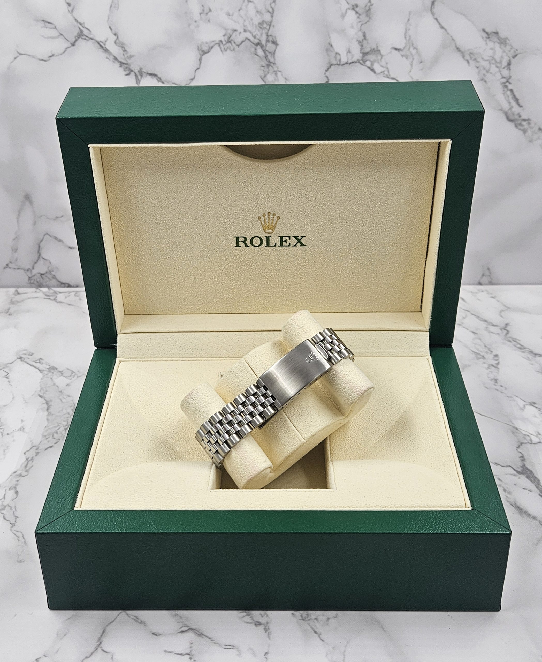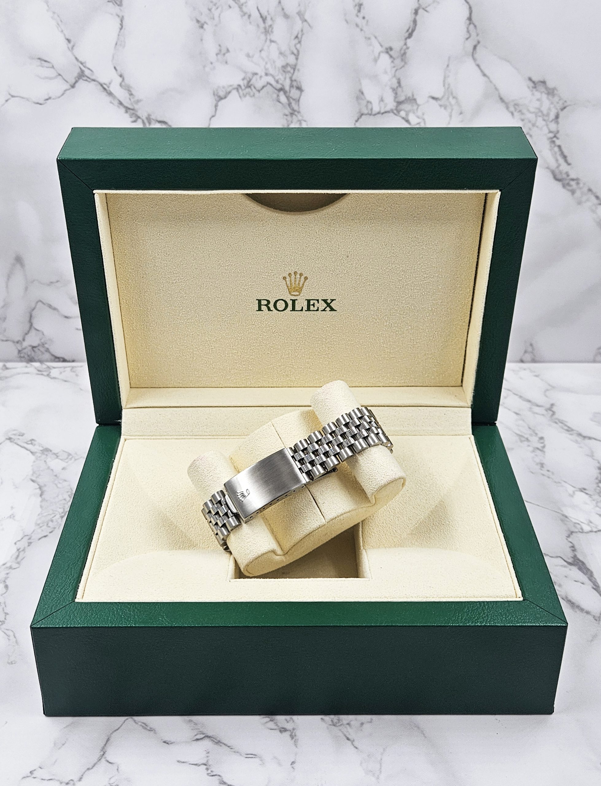 Box and papers: Original Rolex box along with a detailed paperwork check list including our very own letter headed invoice / receipt, a certificate of authenticity, lost and stolen register check, insurance valuation and 12-month warranty card.
