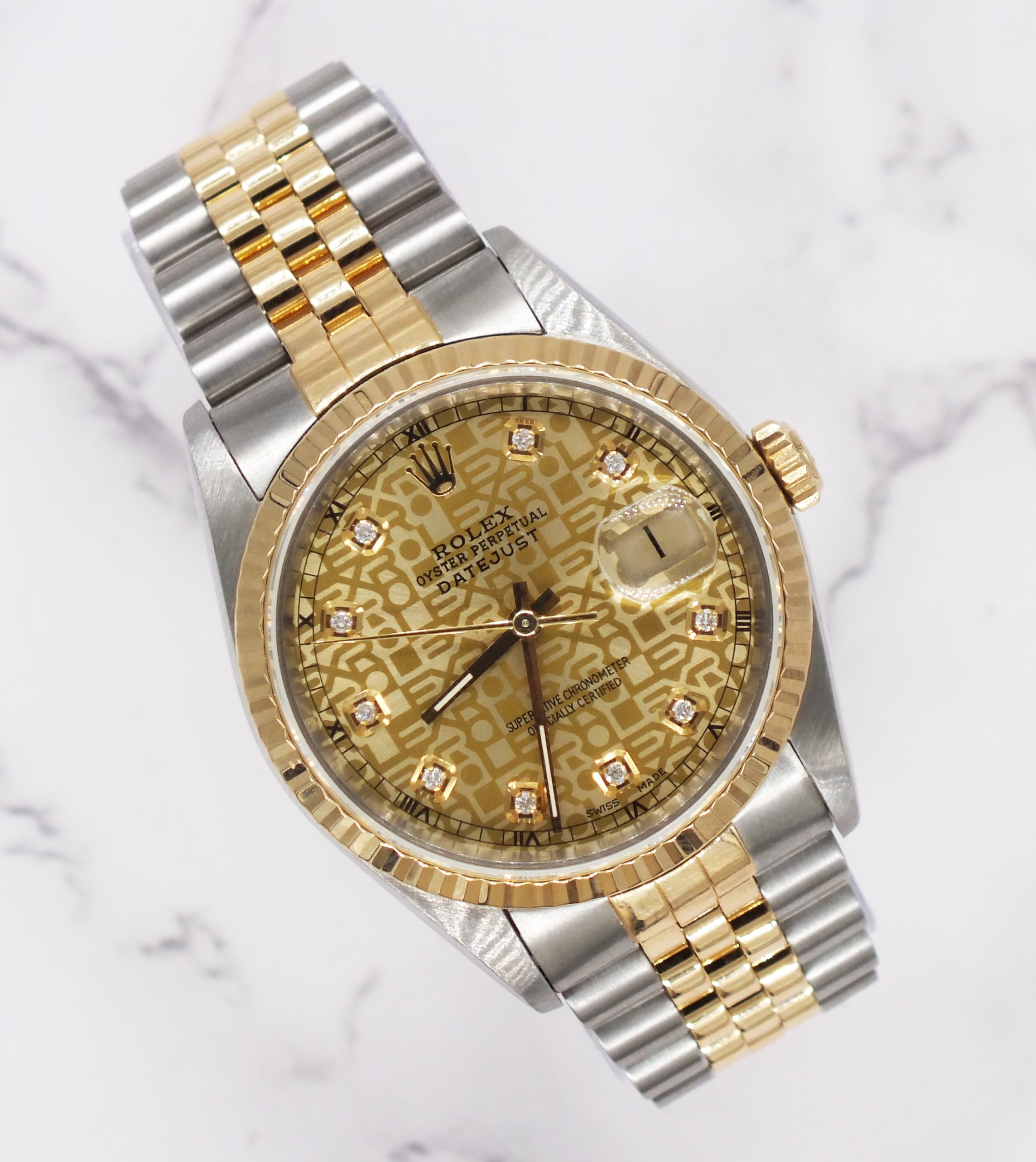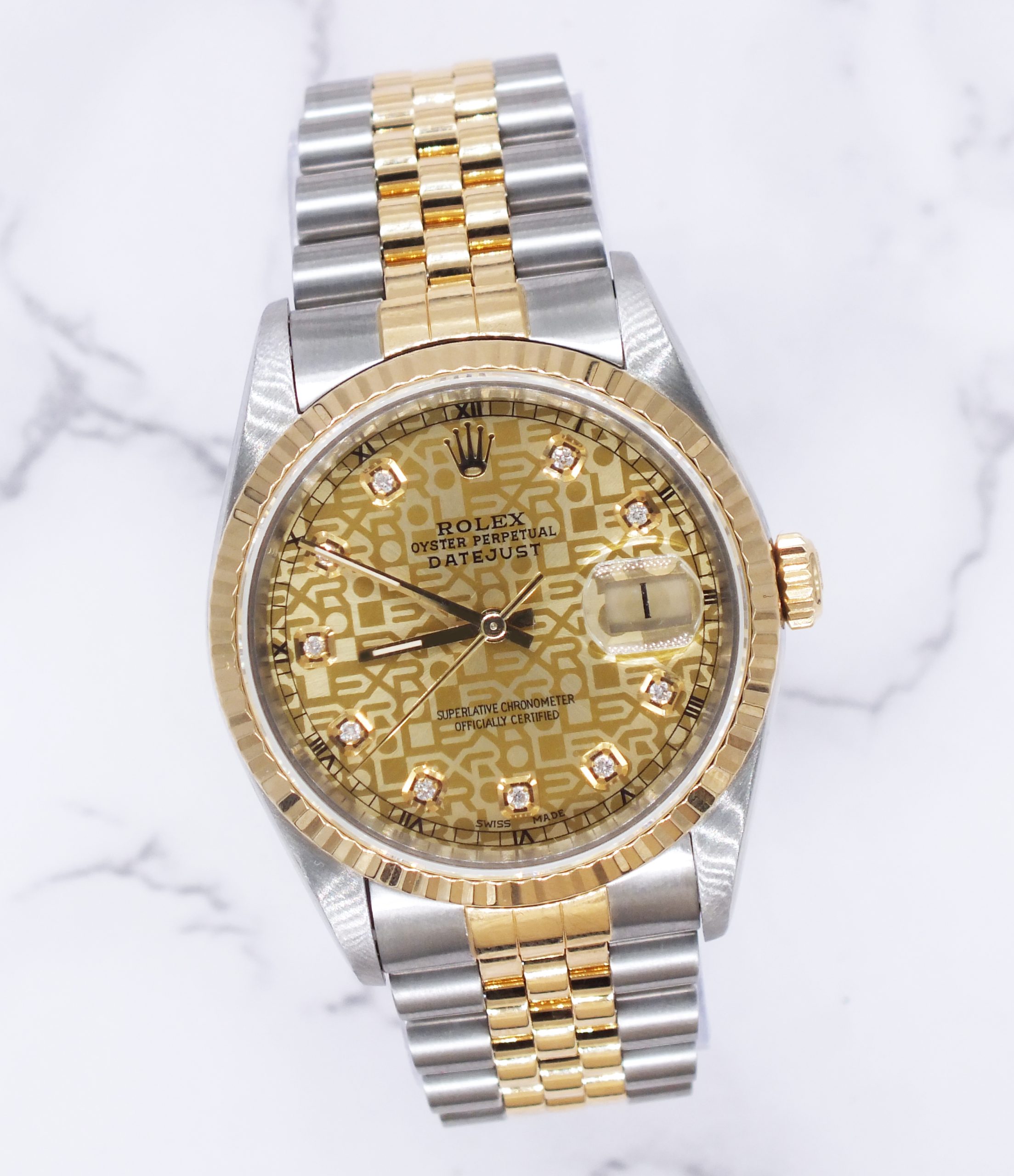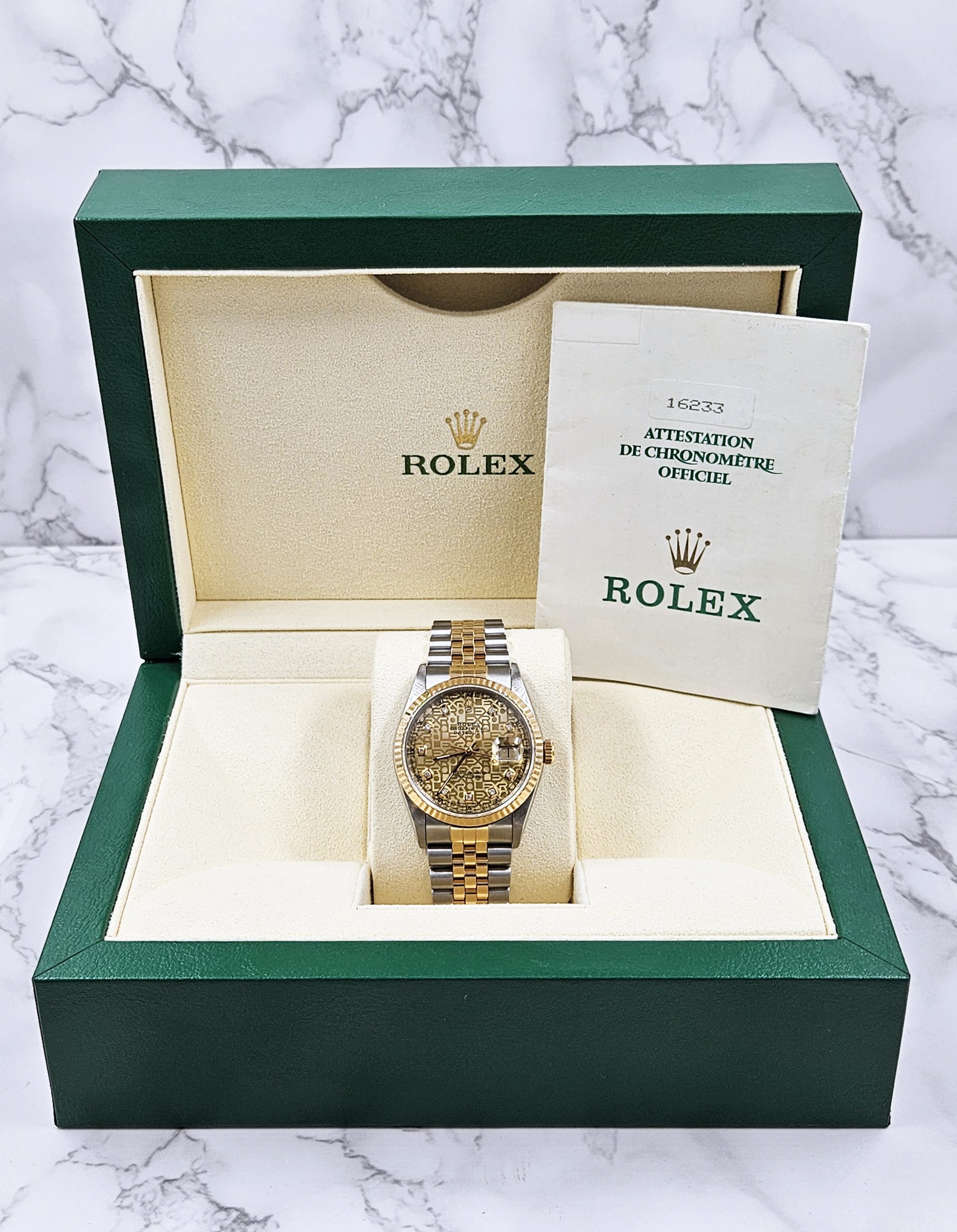 Mens Rolex Datejust in Steel & Gold with Stunning Champagne Jubilee Dial – Box & Papers!