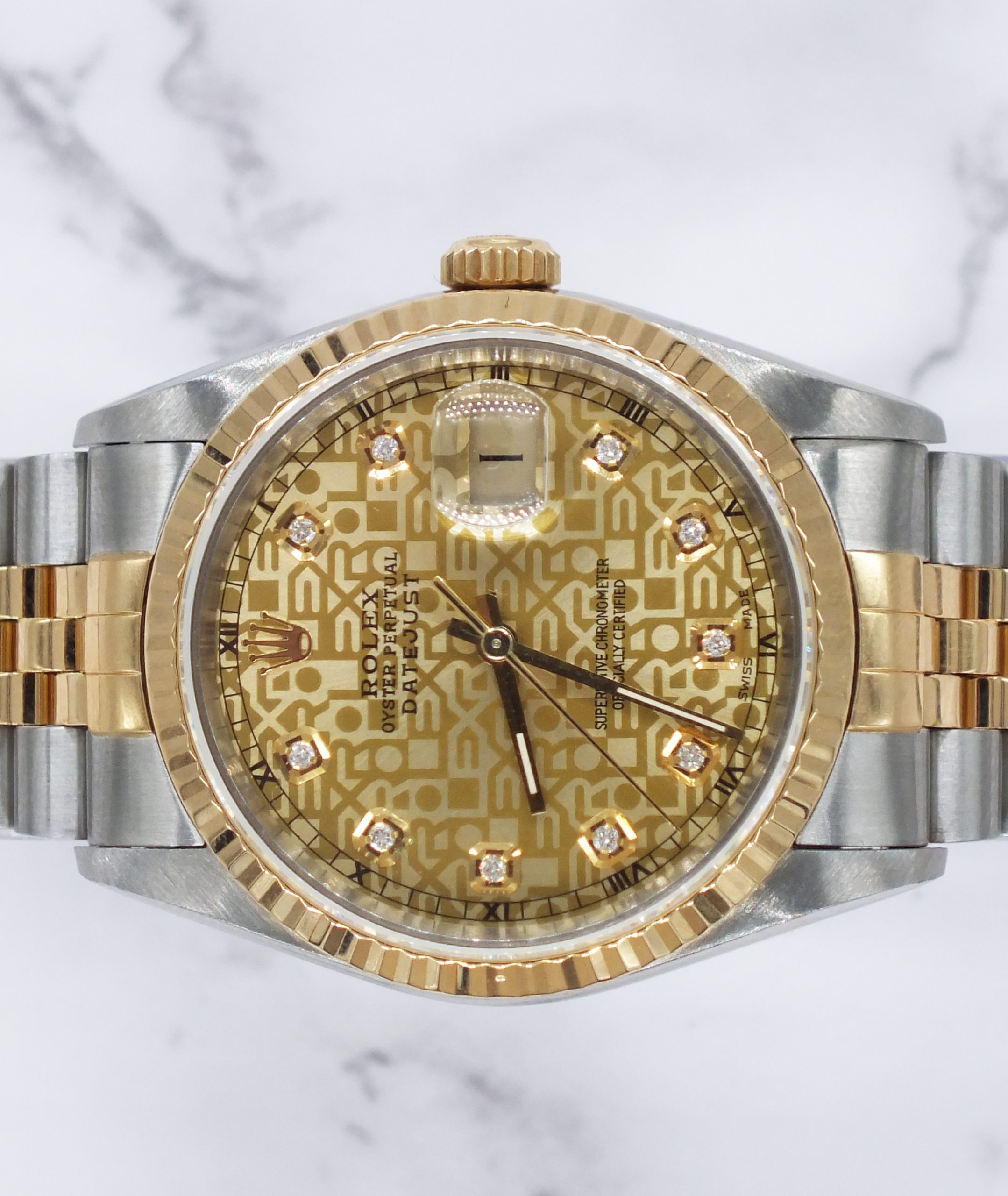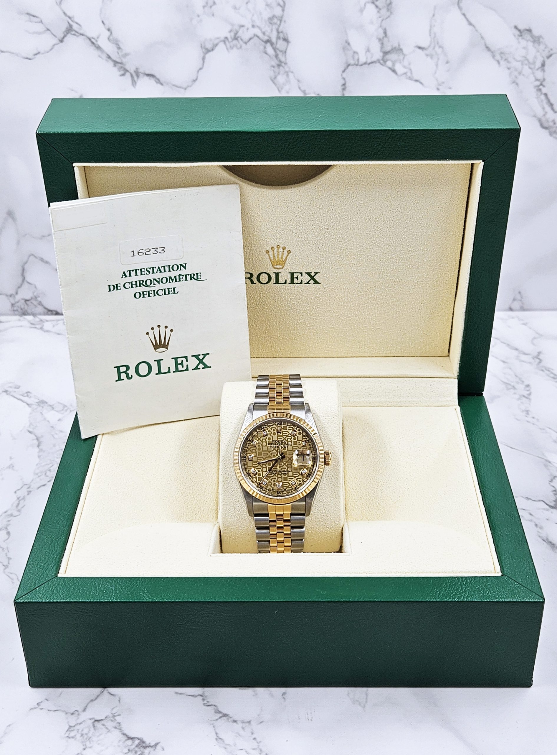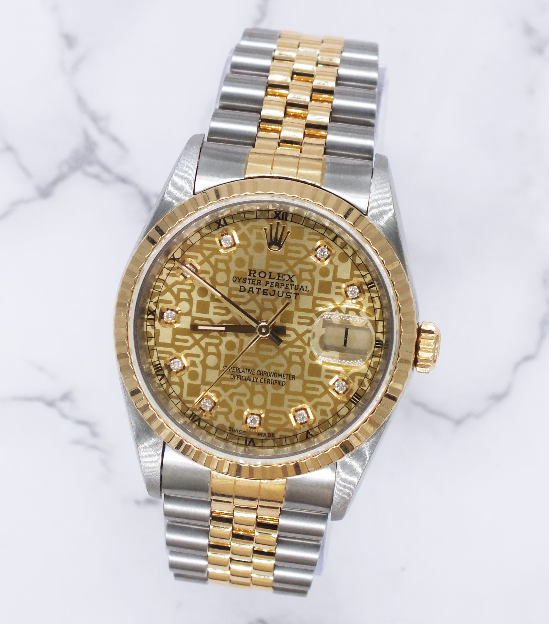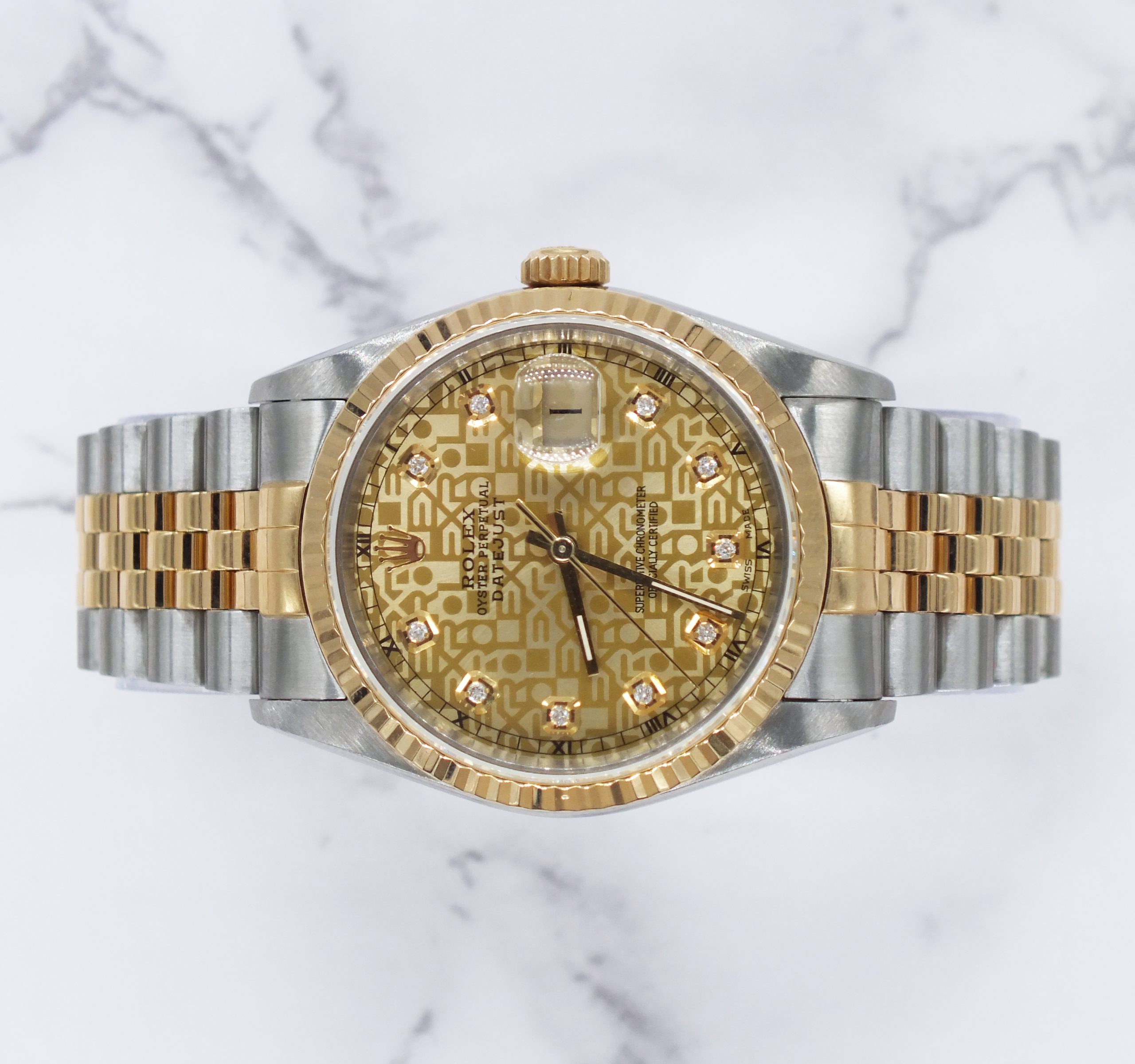 Mens Rolex Datejust in Steel & Gold with Stunning Champagne Jubilee Dial – Box & Papers!